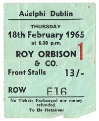 A 'Front Stalls' ticket for the The Big O's performance at the Adelphi in 1965.