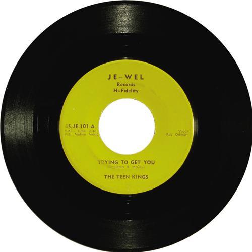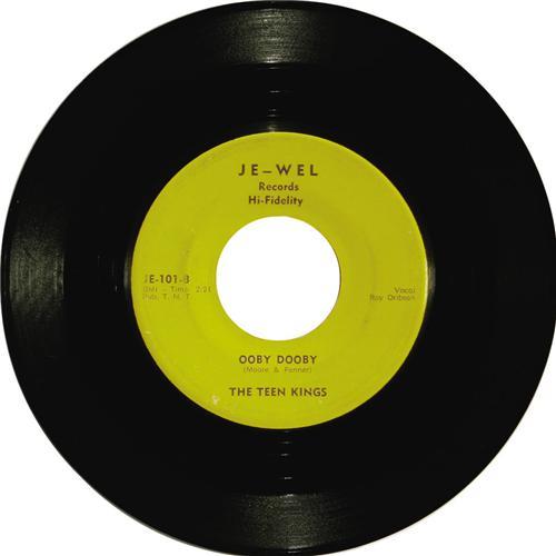 <B>Roy Orbison (as The Teen Kings) "Ooby Dooby"/ "Trying to Get to You" 45 Je-wel 101 (1956).</B></I> Before Monument, even before Sun, Roy recorded on this small Texas label. The Teen Kings featured "Vocal Roy Orbison"...er, we mean "Vocal Roy Oribson"... well, one side (''Ooby Dooby") says one ("Oribson"), the other side another. It's a variation on a very rare record. Condition: VG-EX 6.