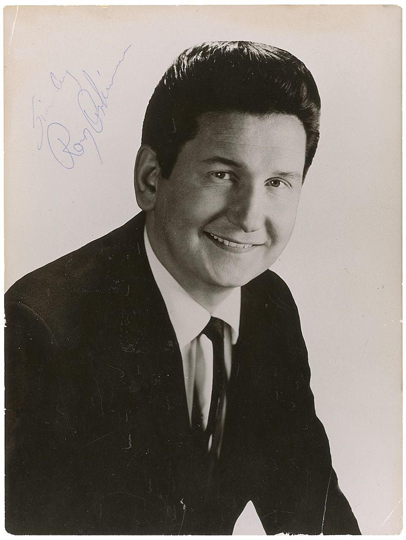 Vintage glossy 7 x 9.25 photo, signed in blue ballpoint, “Sincerely, Roy Orbison.” Trimmed edges, scattered creases and surface marks, mild edge toning, and some light skipping to sentiment, otherwise very good condition.