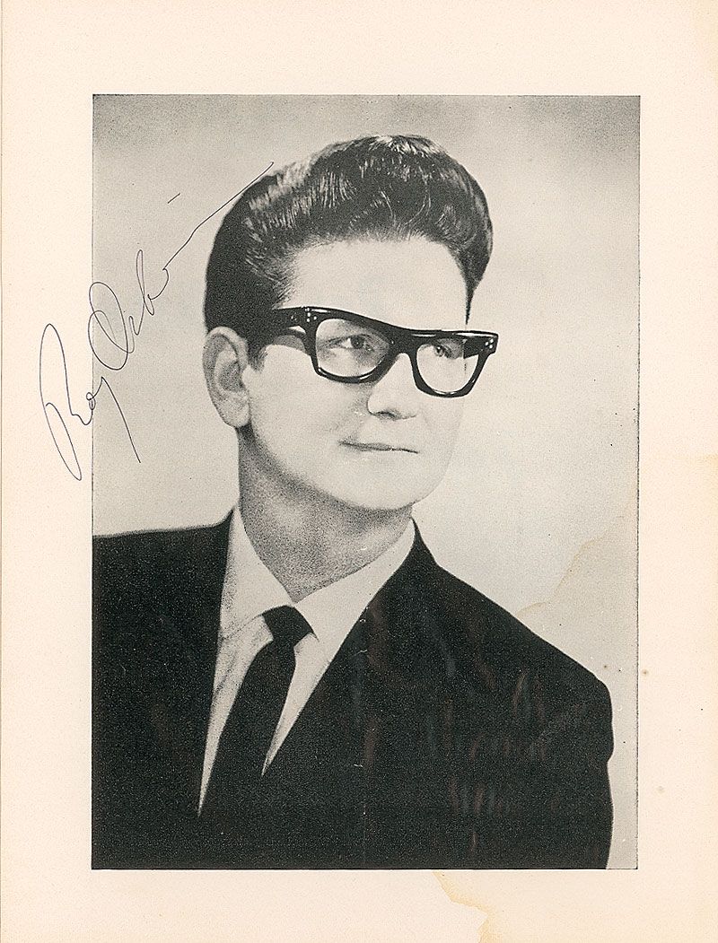 Vintage 8 x 10.25 British concert program photo, signed in black ballpoint. In very good condition, with a central vertical fold and toning and dampstaining to right side.