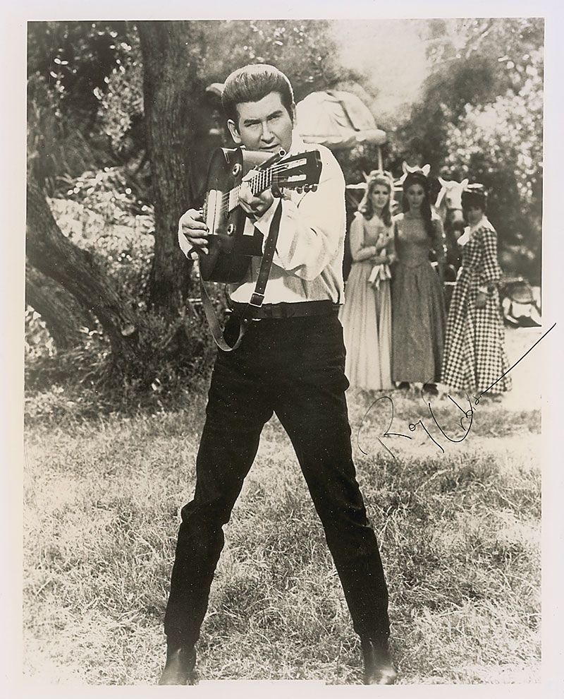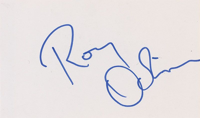 Two items: glossy 8 x 10 photo of Orbison from The Fastest Guitar Alive, signed in black ink; and a large felt tip signature, “Roy Orbison,” on a white 5 x 3 card. In fine condition.