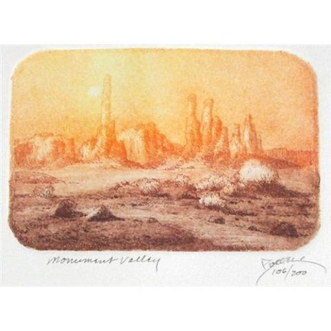 Roy Purcell, Etching , (5620) Roy Purcell (b.1936) (Nevada) Etching, "Monument Valley", #106/200, image size 4" x 5 3/4", Pencil Signed