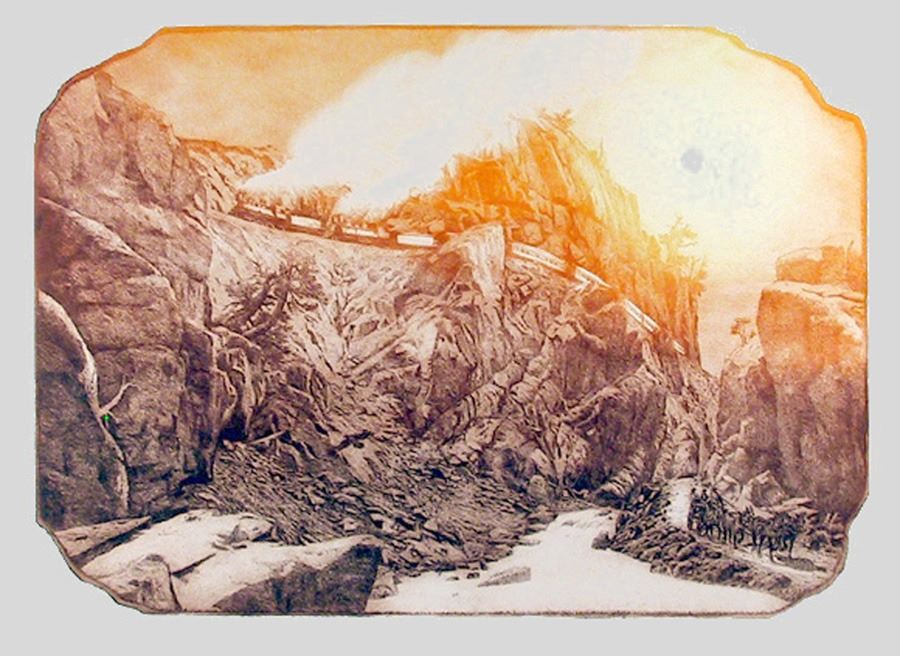 Roy Purcell, On the Denver and Rio Grande, Aquatint Etching