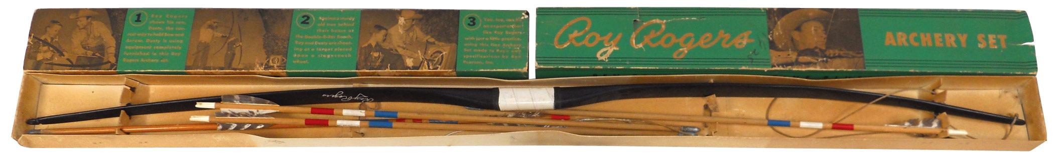 Roy Roger items (9), includes archery set in box, mfgd by Ben Pearson, Inc., vinyl lunch box by Am.