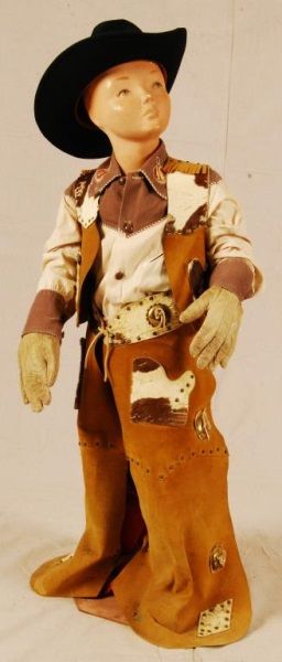 Roy Rogers Frontier Shirt Size 6 , Created by Rob Roy. The Pants are Billy The Kid Saf T Nee Texans. Cowboy hat is from Rockmount Ranch Gear Denver Colorado. Matching vest and chaps. With work gloves.
