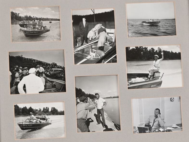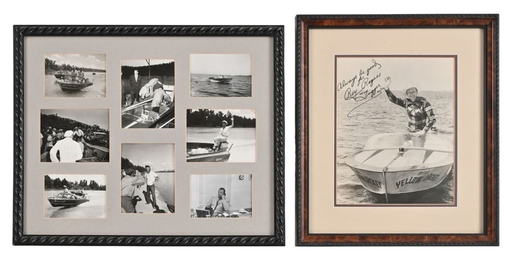 A collection of original photographs of Roy Rogers boating. plus a photo with printed signature "Always be good for Roy Rogers & Trigger" glossy 8" x 10" photo of Roy aboard his famous speed boat "Miss Yellow Jacket".