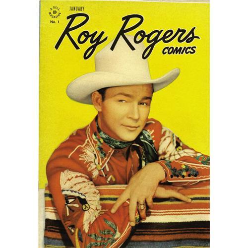 <B>Roy Rogers Comics #1 (Dell, 1948) Condition: VF/NM.</B></I> After starring in more than a dozen issues of Dell's <B>Four Color</B></I>, Roy got his own title in 1948. The King of the Cowboys had it all; a purty gal, the purtiest horse, a movie career, a guitar and several hit records, and now his very own comic book. Even if you can't have all that other stuff, you can nab a copy of the premiere issue of his comic book right here. Overstreet 2006 VF/NM 9.0 value = $1,069; NM- 9.2 value = $1,500. <I>From the John McLaughlin Collection</B></I><BR><BR><b>Shipping:</b> Un-Slabbed Comic (<a target="_blank" href="http://www.heritageauctions.com/common/shipping.php">view shipping information</a>)