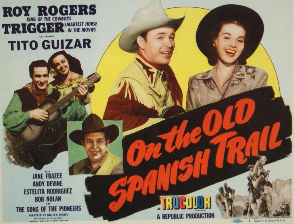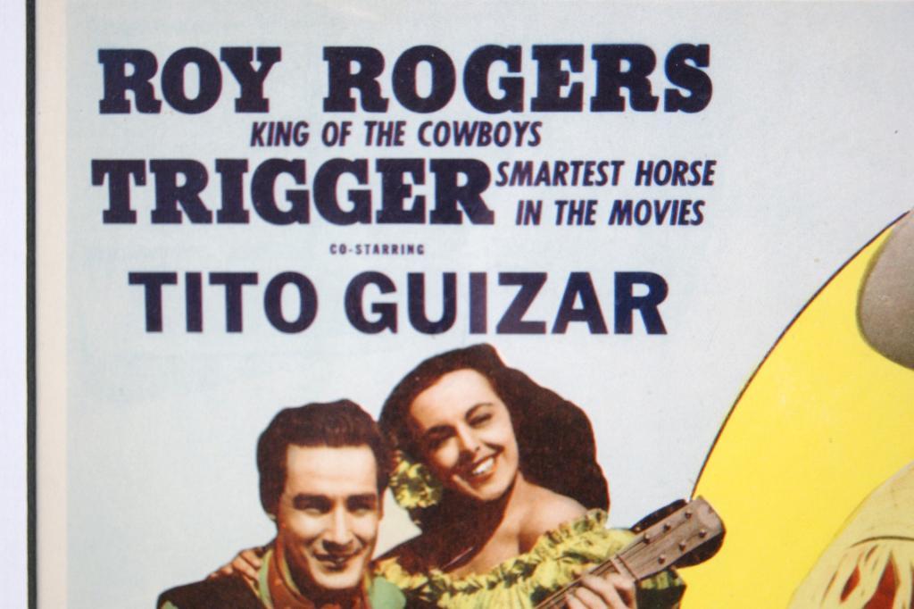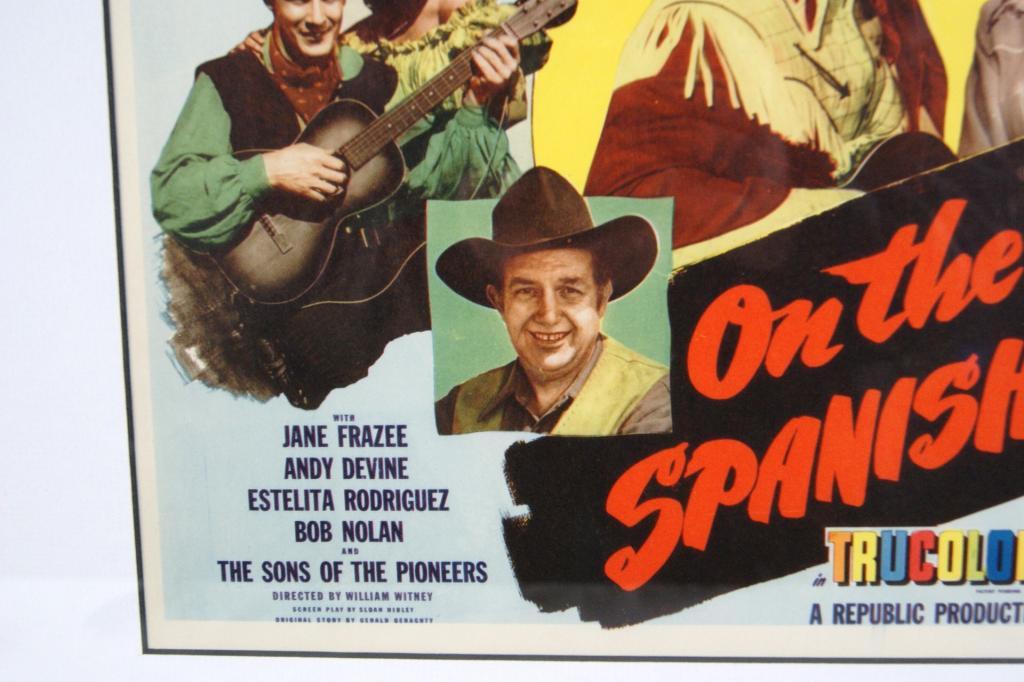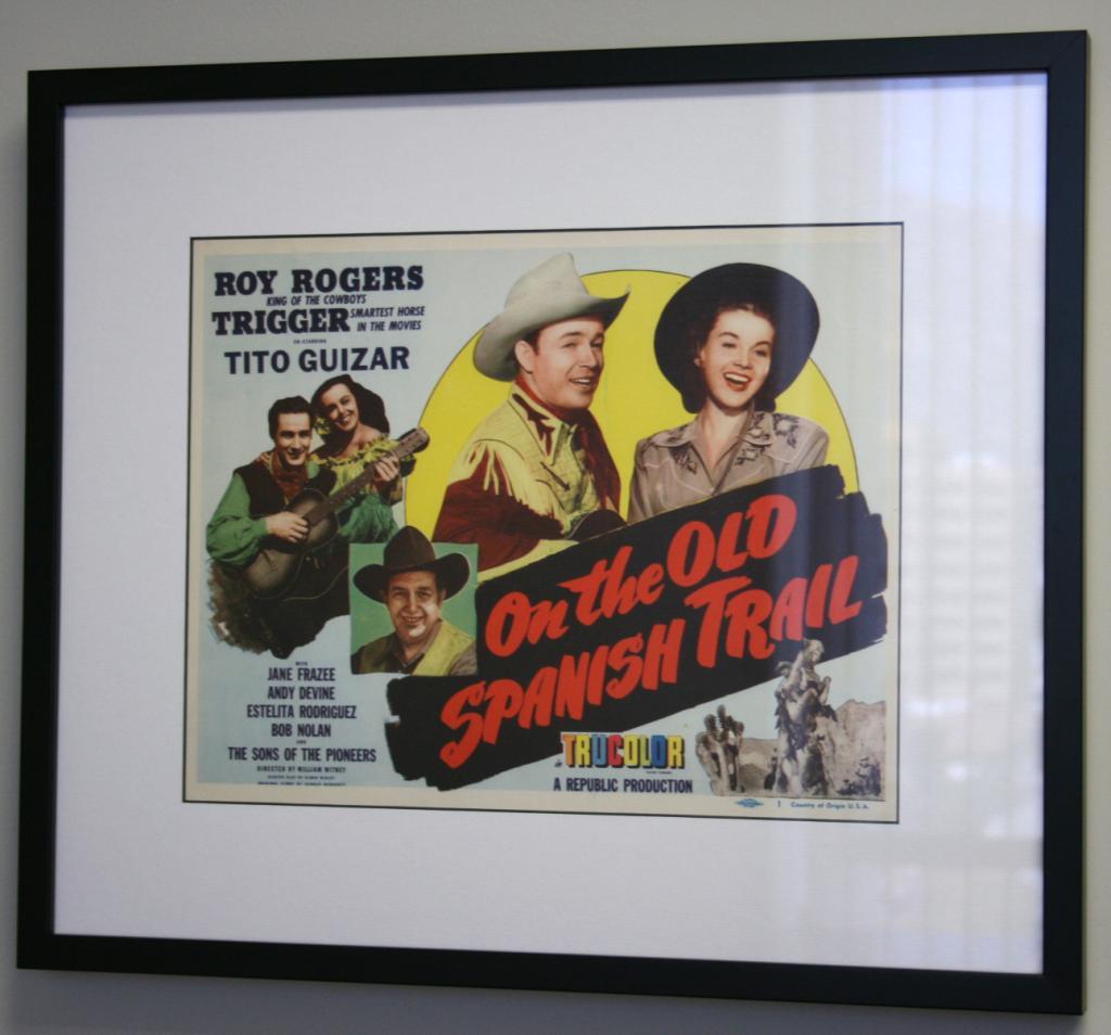 Roy Rogers 'On the Old Spanish Trail' Lobby Card.  1947.  Very Good - Excellent Condition - Nearly Flawless.  Professionally Framed with UV Glass.  Linen backed.  Museum Quality Vintage Poster