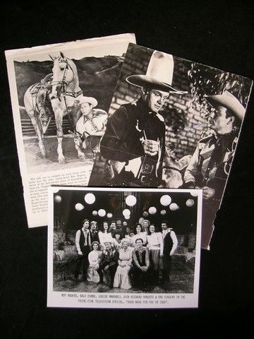 A lot of (3) autographed items from the legendary singing cowboy himself, Roy Rogers. Lot includes two signed 12"x 9" B&W promotional clippings, one with him and actor/comedian Bob Hope, the other features Roy and his famous horse Trigger and is signed 'Roy Rogers & Trigger.' The 8x10 glossy photo is from a 1982 television special "Good News For You In 1982."