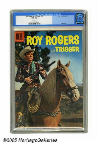 <B>Roy Rogers & Trigger #97 (Dell, 1956) CGC NM- 9.2 Off-white pages.</B></I> Photo cover. John Buscema art. Overstreet 2005 NM- 9.2 value = $80. CGC census 2/05: 1 in 9.2, none higher.