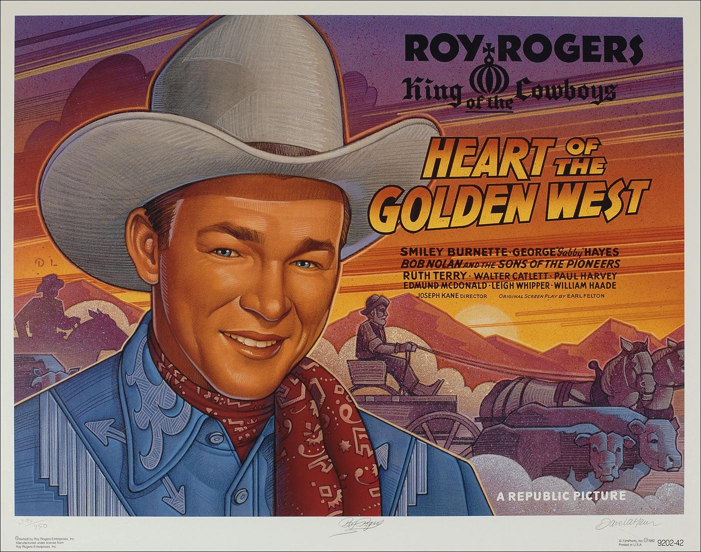 Color 28 x 22 print entitled of a half-sheet poster for Heart of the Golden West, numbered #394/450, signed in the lower border in pencil. Rolled and in fine condition. Pre-certified PSA/DNA and RRAuction COA.