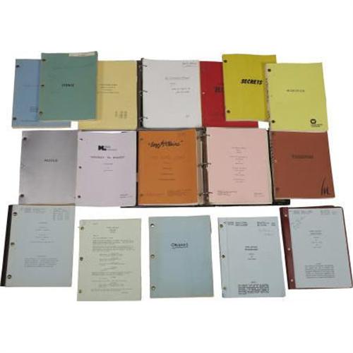 <B>Roy Thinnes TV Drama Scripts.</B></I> Set of 19 episodic television and made-for-TV scripts from Roy Thinnes' personal library includes the <I>From Here to Eternity</B></I> TV miniseries (1979), the 1991 miniseries <I>An Inconvenient Woman,</B></I> <I>Stones</B></I> (aired as <I>The Horror at 37,000 Feet,</B></I> 1973), <I>Secrets</B></I> (1977), <I>Code Name: Diamond Head</B></I> (1977), <I>Stone</B></I> (1979), <I>Freedom</B></I> (1981), <I>Scruples</B></I> (1981), <I>Sizzle</B></I> (1981), <I>Hotel,</B></I> (1984), <I>Love Boat</B></I> (1984), <I>Highway to Heaven</B></I> (1986), <I>Murder, She Wrote</B></I> (three episodes, 1985-90), and <I>Orleans</B></I> (1989) -- all with handwritten notes by the actor. In overall Very Fine condition. <I> From Roy Thinnes' Collection.</B></I><BR><BR><b>Shipping:</b> Books & Catalogs (<a target="_blank" href="http://www.heritageauctions.com/common/shipping.php">view shipping information</a>)