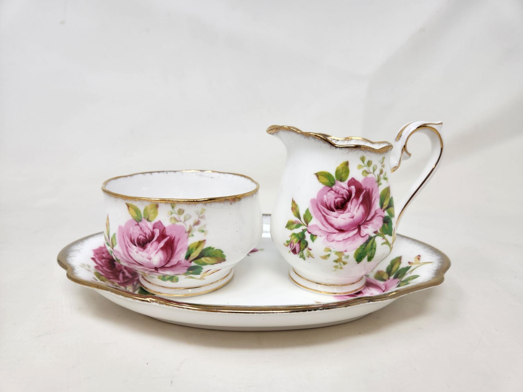 Royal Albert American Beauty Creamer and Sugar with Base Plate