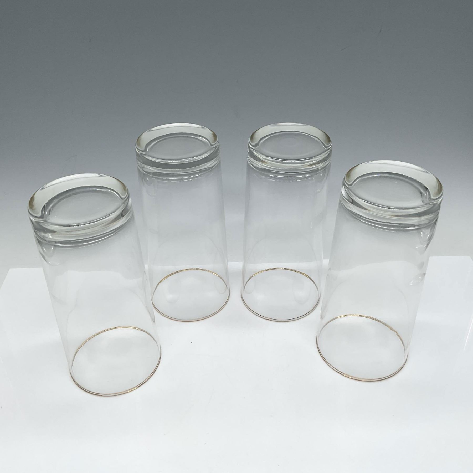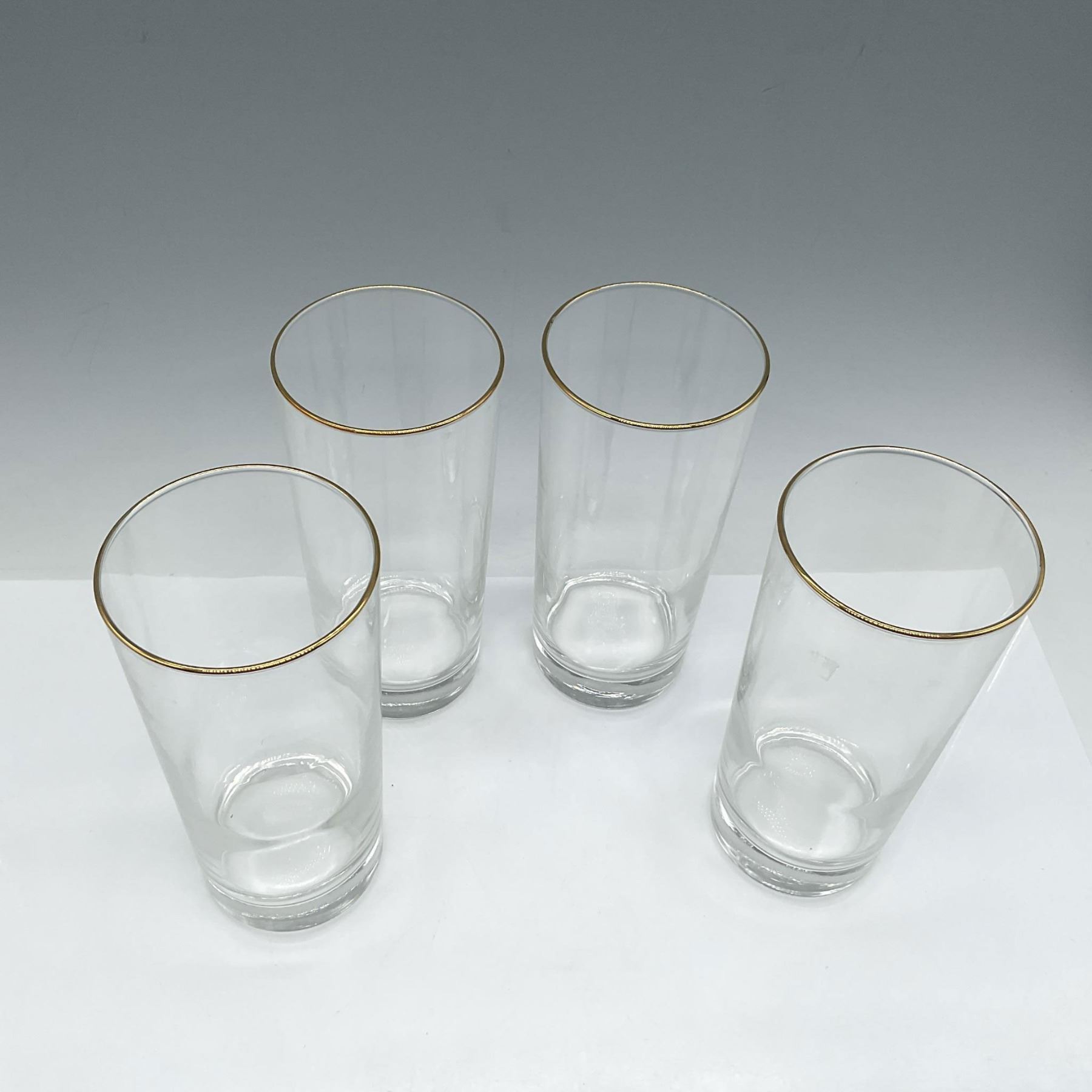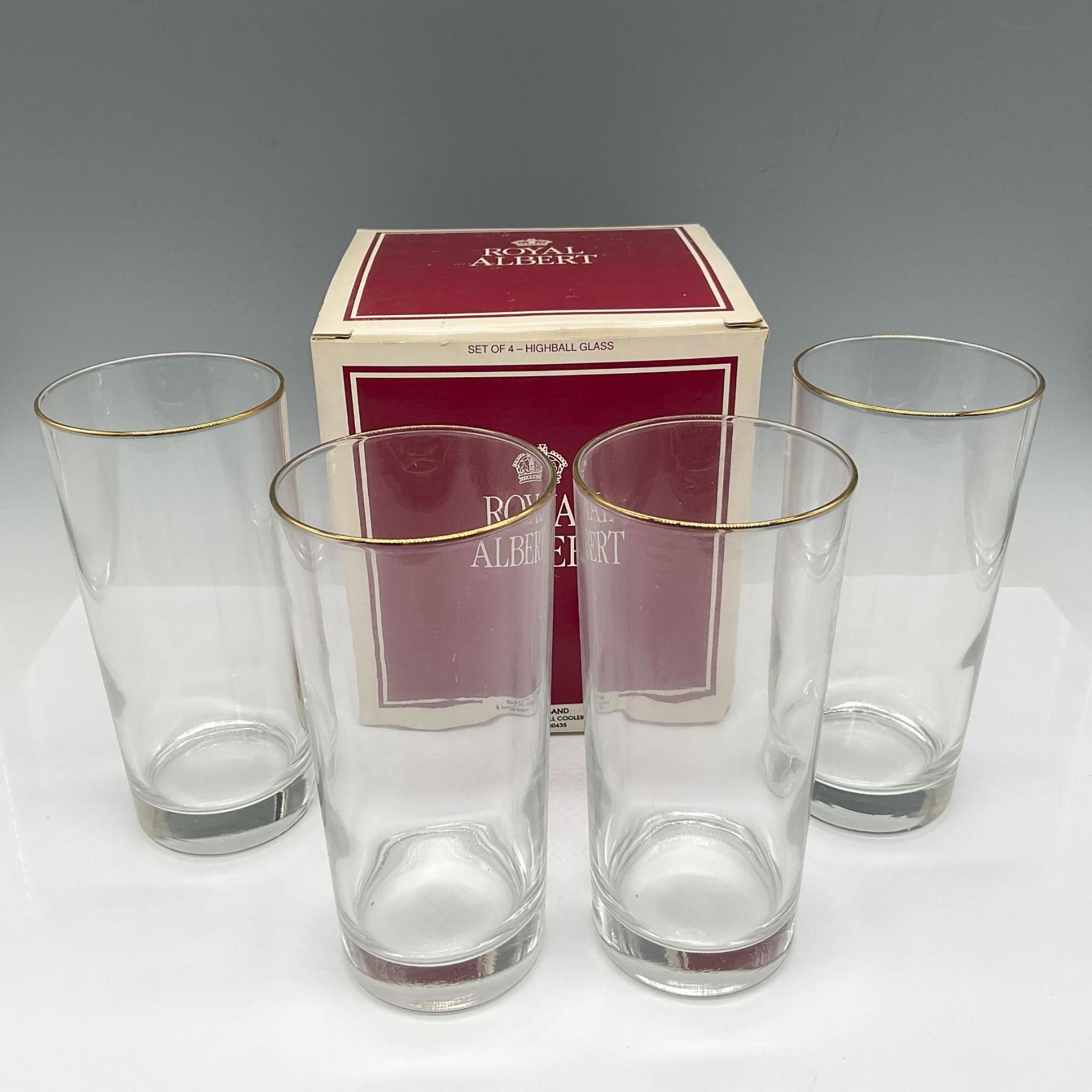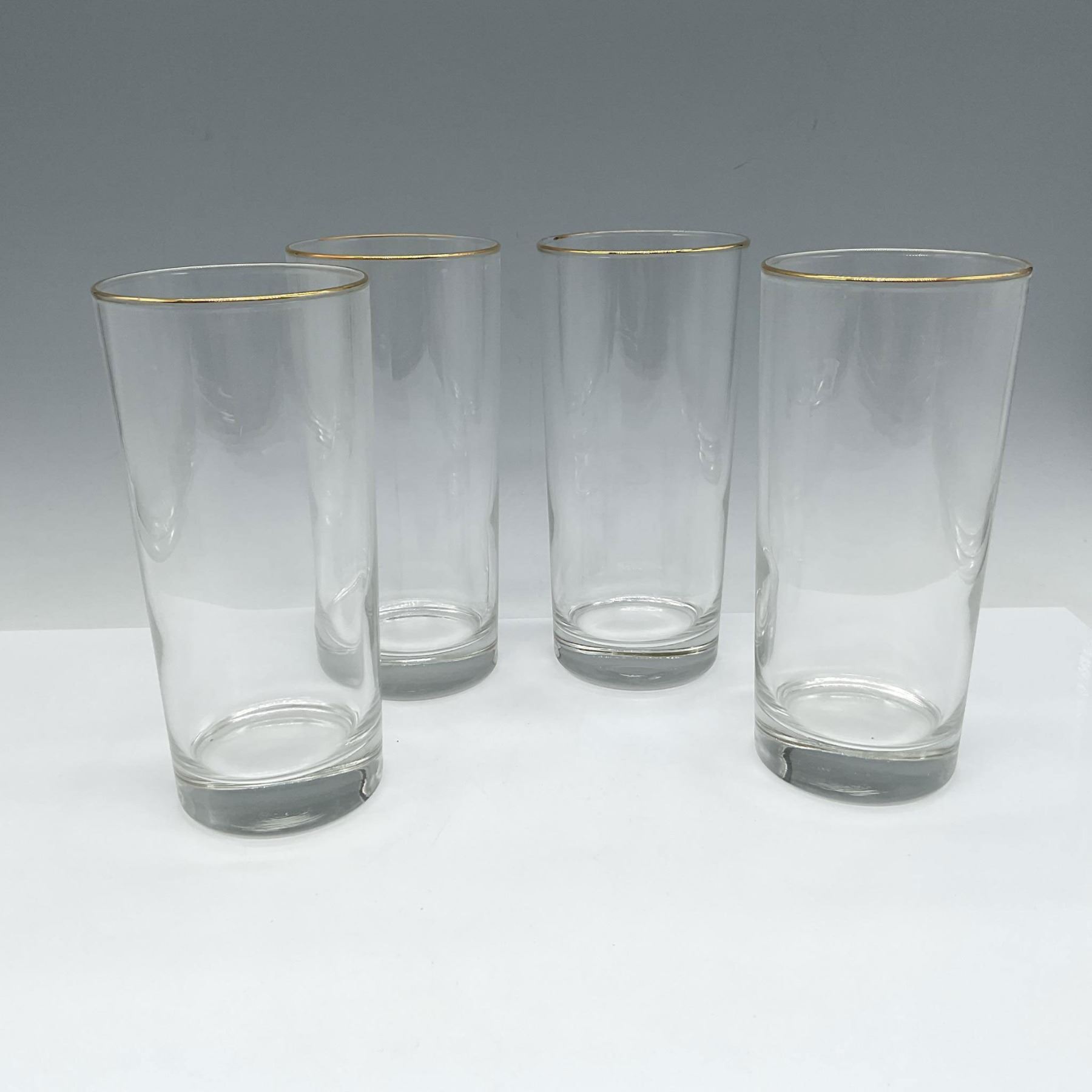 Tall clear cooler glass with gilt band on rim. This item has its original box: 6"L x 6"W x 6.5"H. Issued: c. 1990