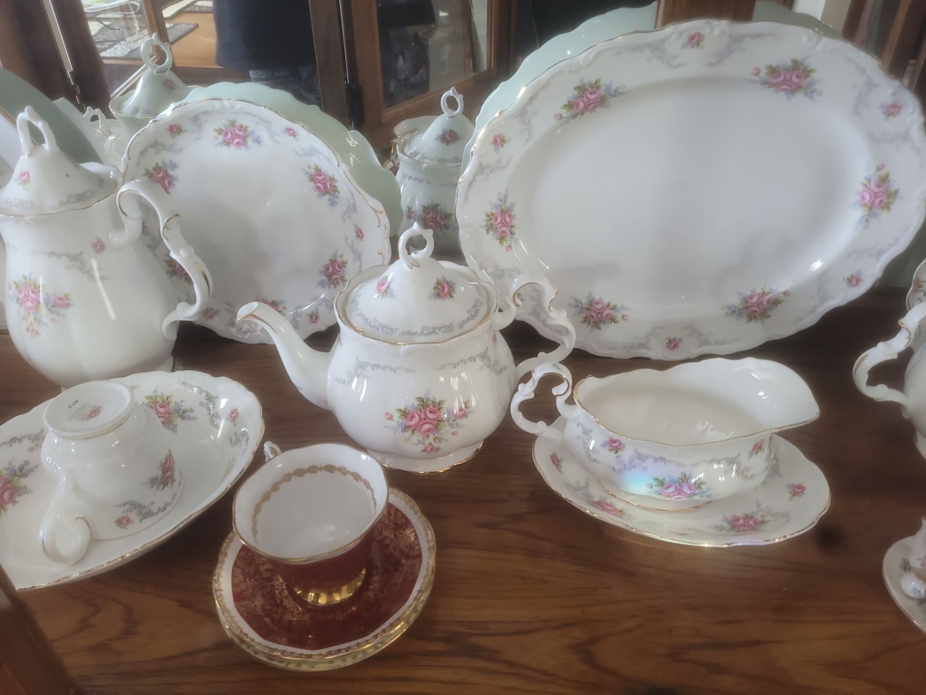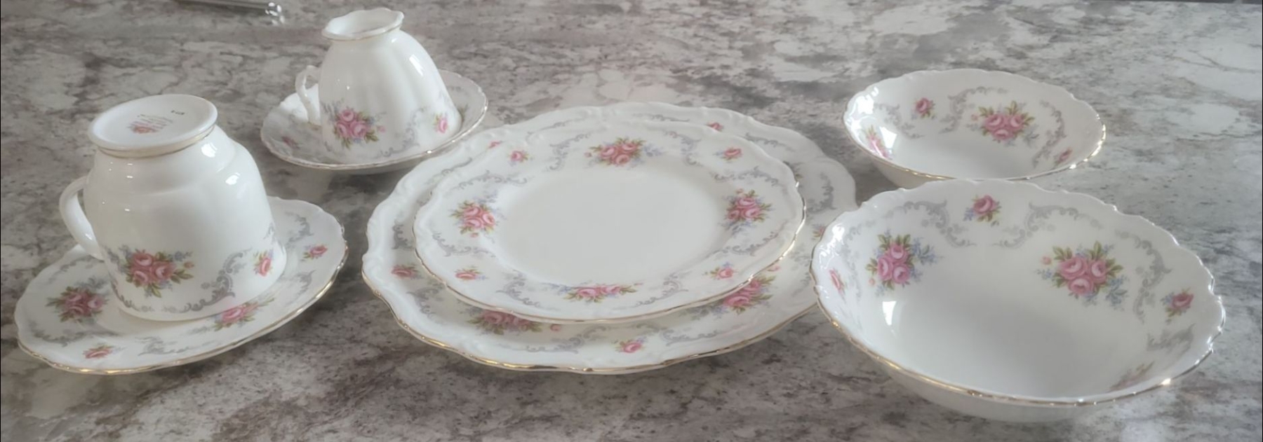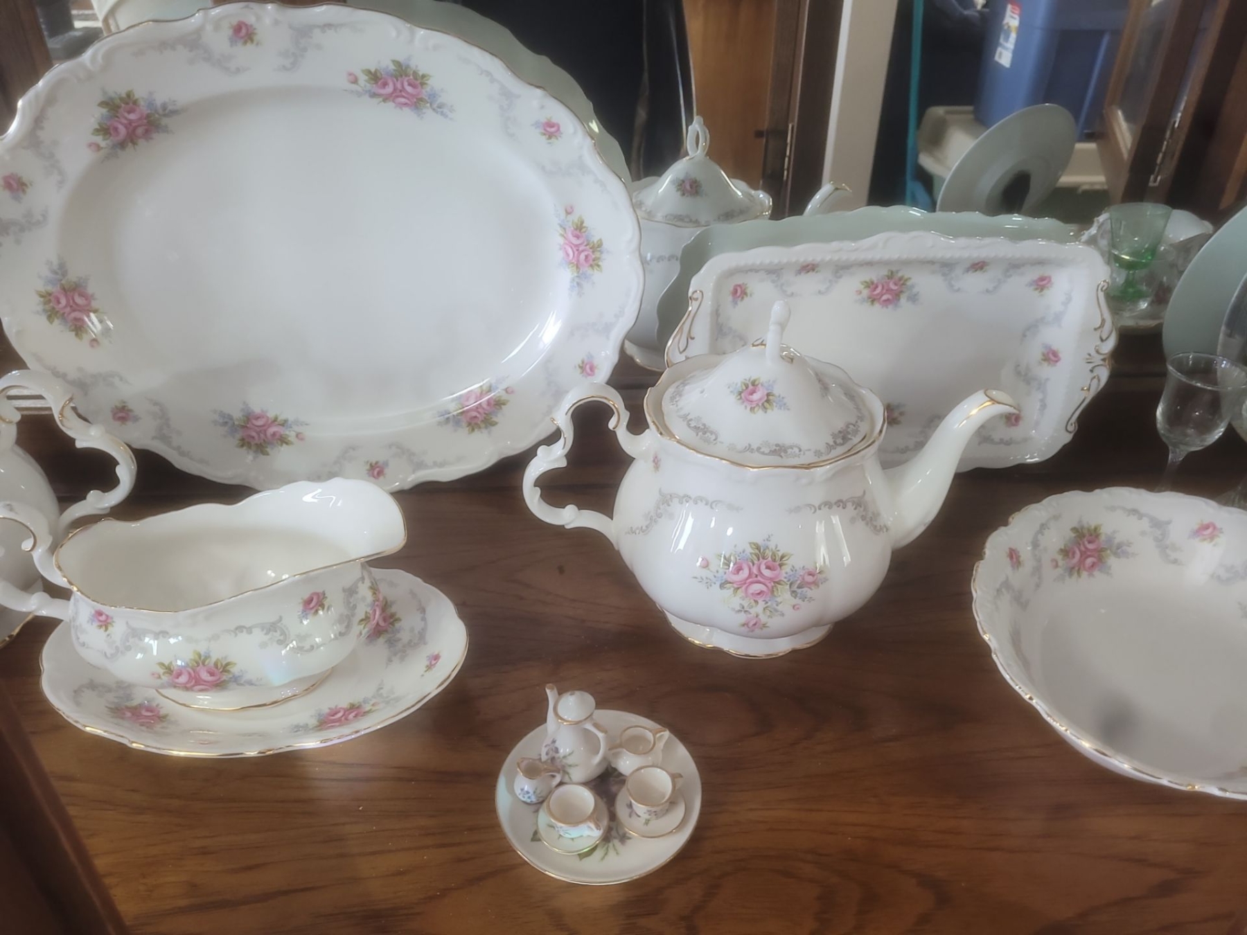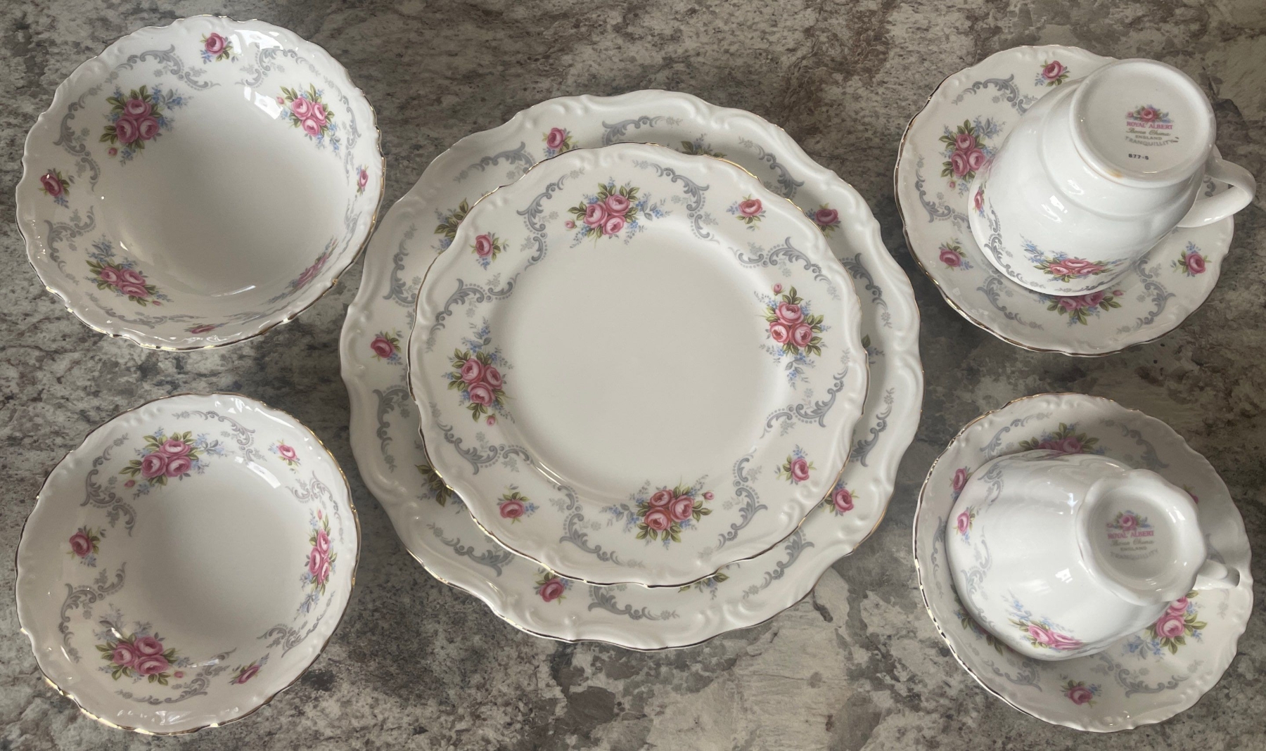 Royal Albert Bone China England "Tranquility" 12 person Setting + matching serving platters