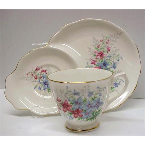Elegant and pretty hostess set - Made by Royal Albert, bone china in England - Excellent condition - Saucer or tray measures about 8 3/4" x 6" and cup is regular size - Please include 7.00 for shipping + insce. - Thanks!