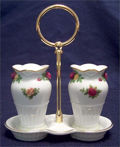 Royal Albert Old Country Roses Salt and Pepper with tray. New in box