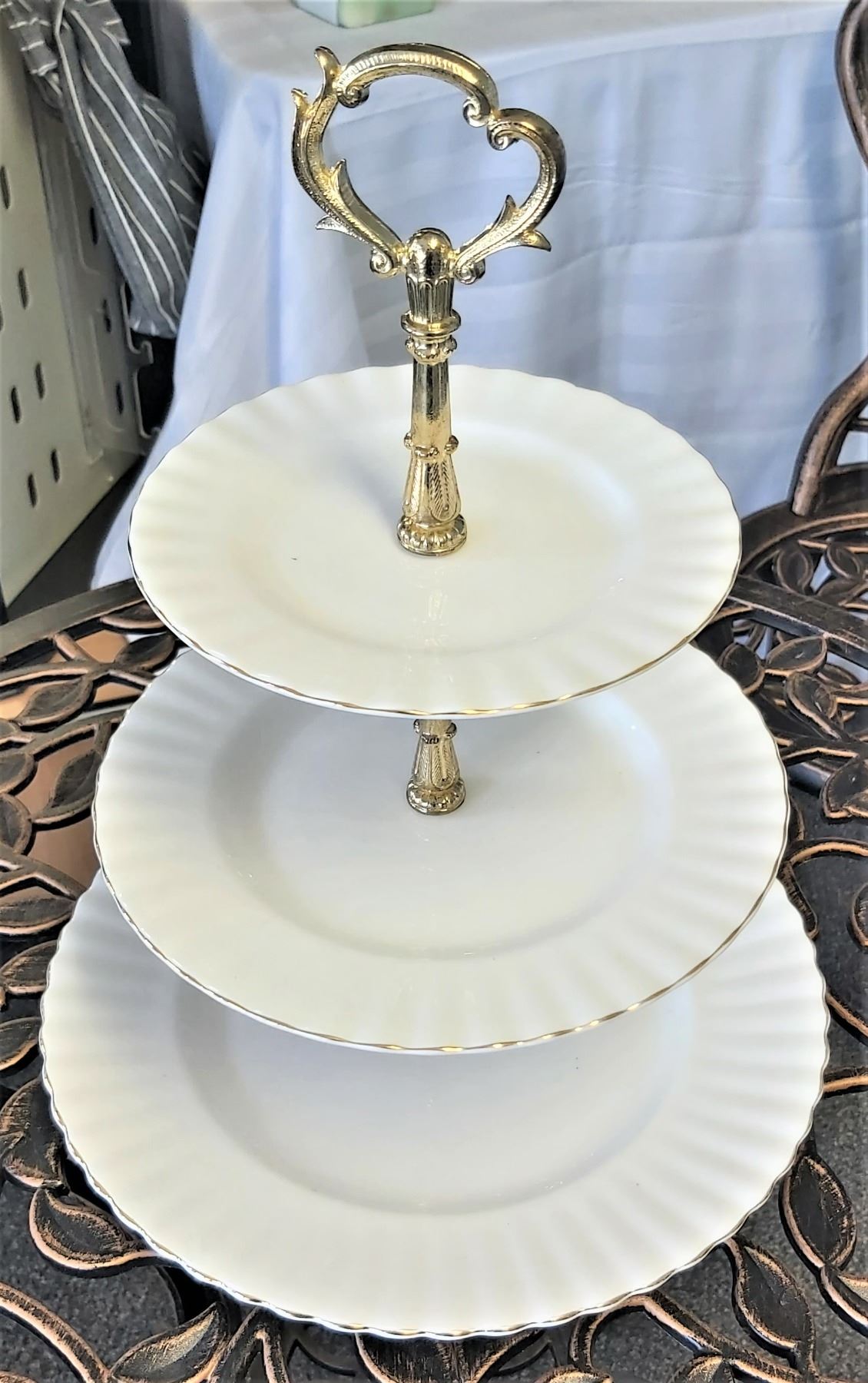 Replacement hardware that fits well and looks great, gorgeous 3 tiered dessert plates.