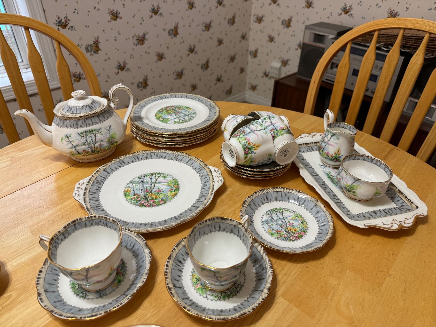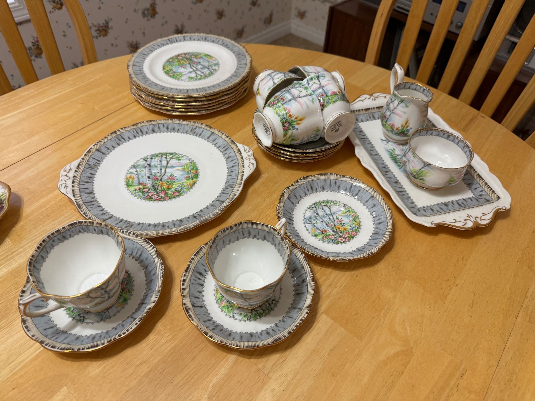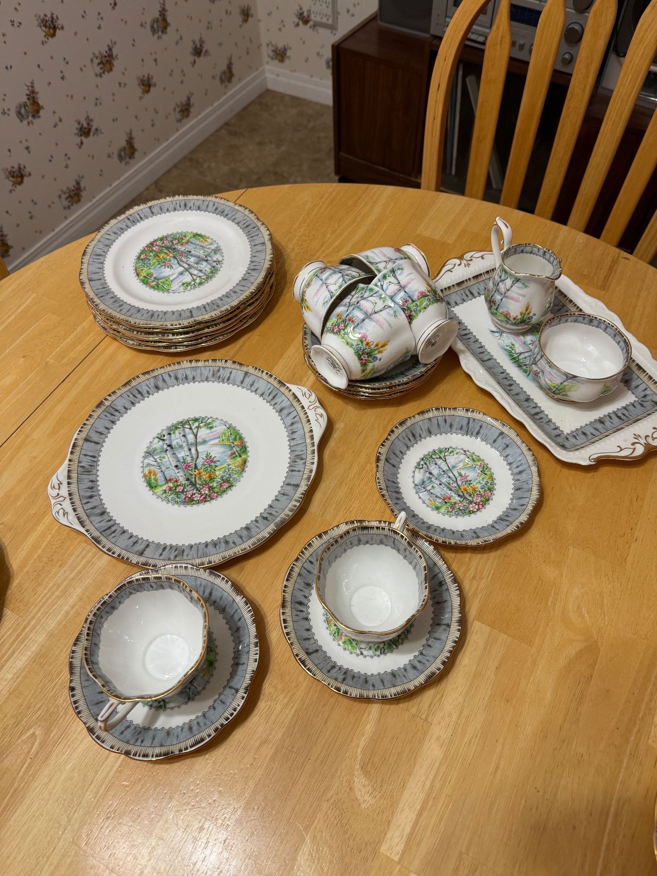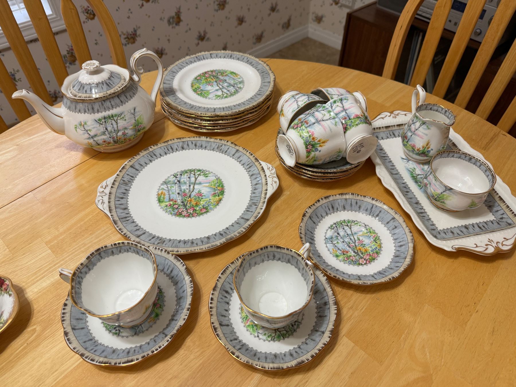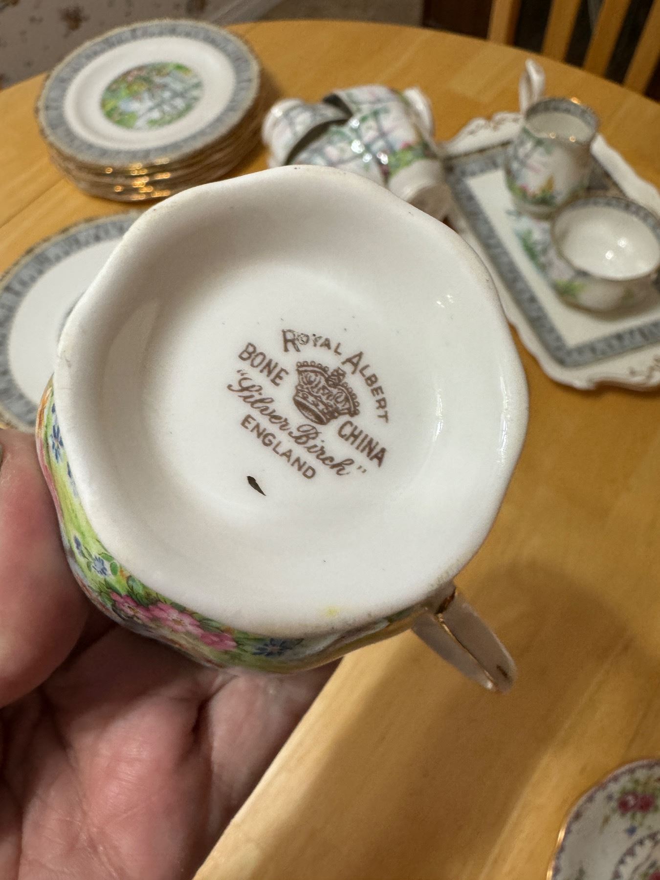 Royal Albert silver birtch dishes and tea pot