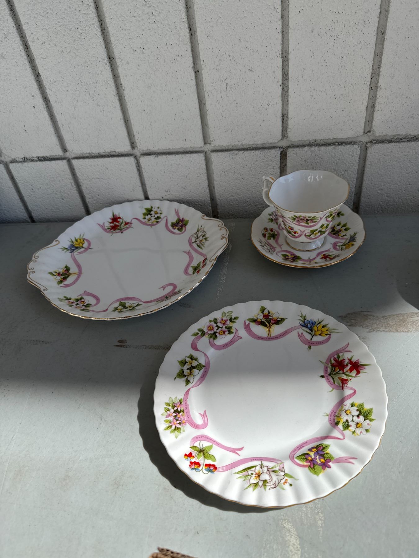 Royal Albert teacup saucer, serving plate and side plate our emblems dear