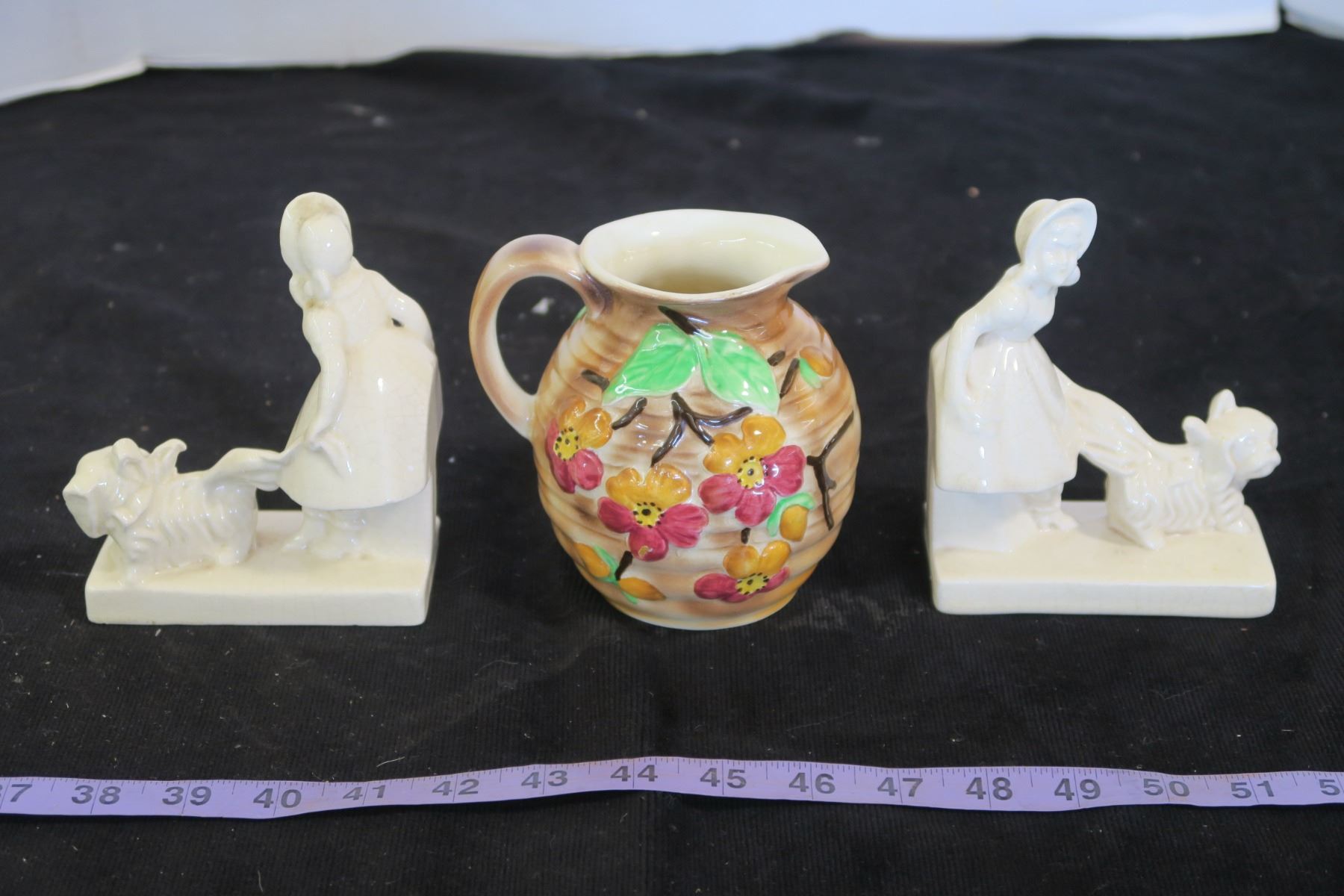 Royal Art Pottery Jug & Pair of German Made Book Ends