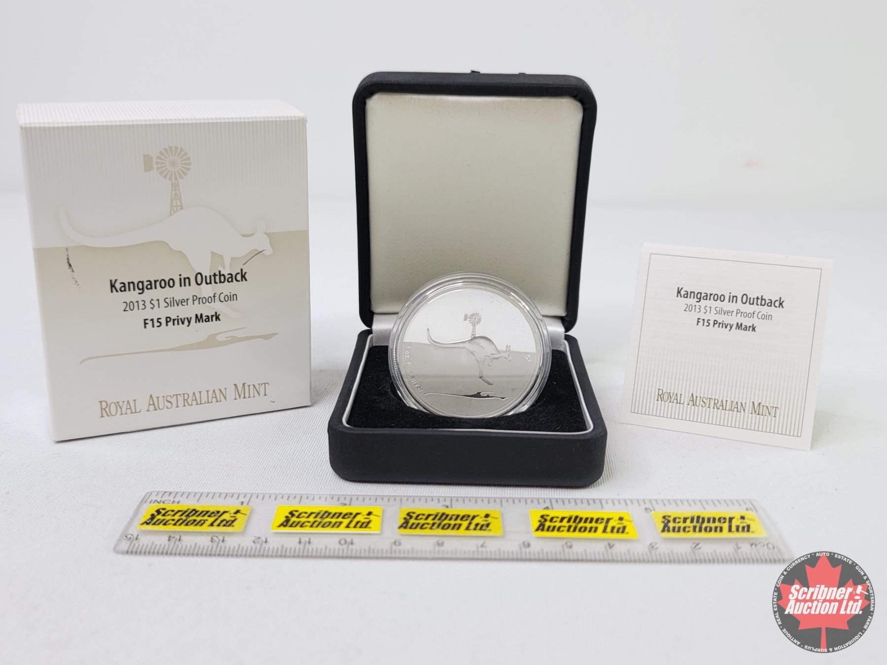 Royal Australian Mint 2013 $1 Silver Proof Coin "Kangaroo in Outback" (COA #1804) (99.9%) (SEE PICS!)