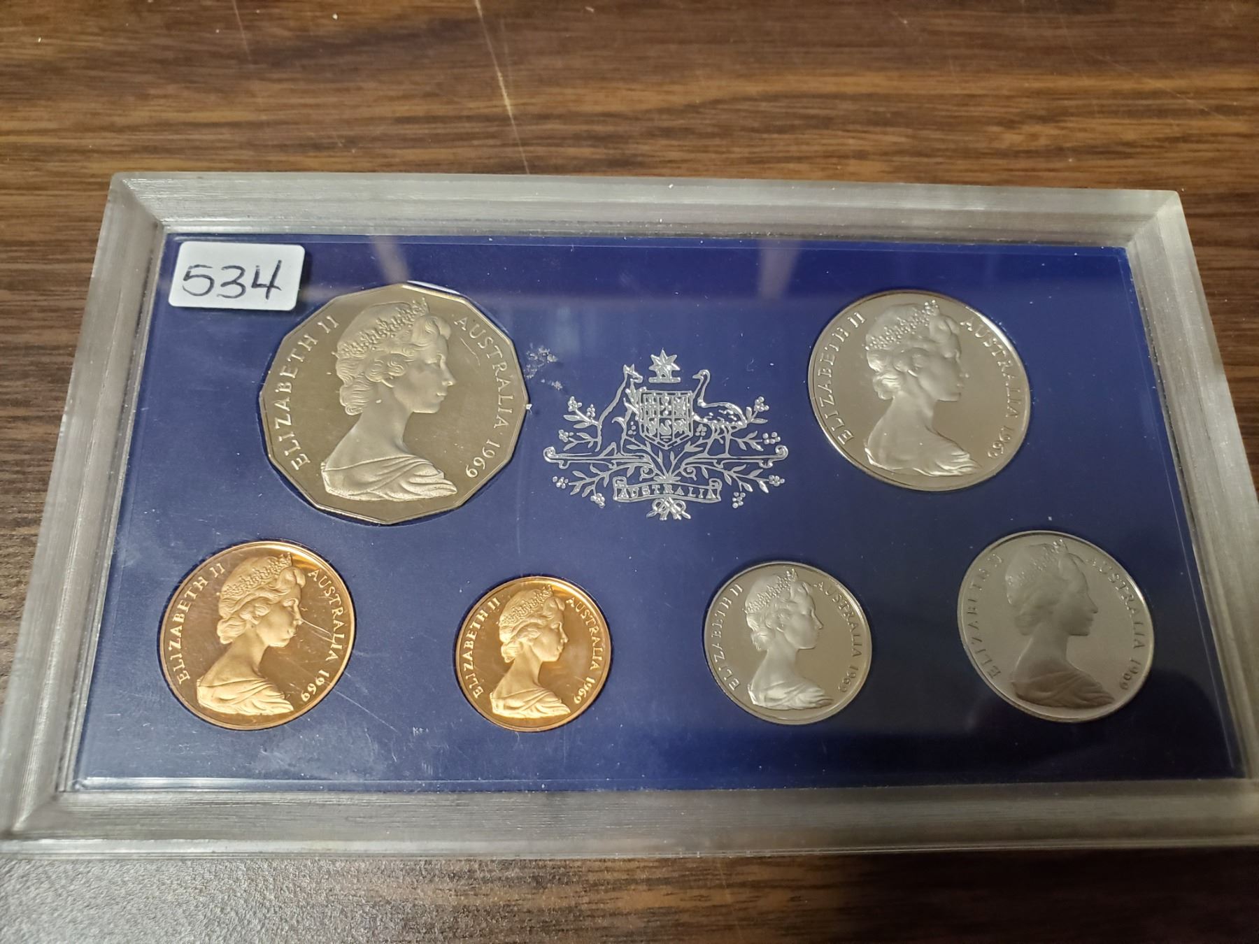 Royal Australian Mint Frosted Proof set of 1969 coins in a clear plastic display,1-coin set