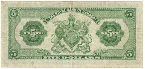 Royal Bank of Canada $5.00 note 1935 in Very-Fine, 630-18-02a, serial 1026992.
