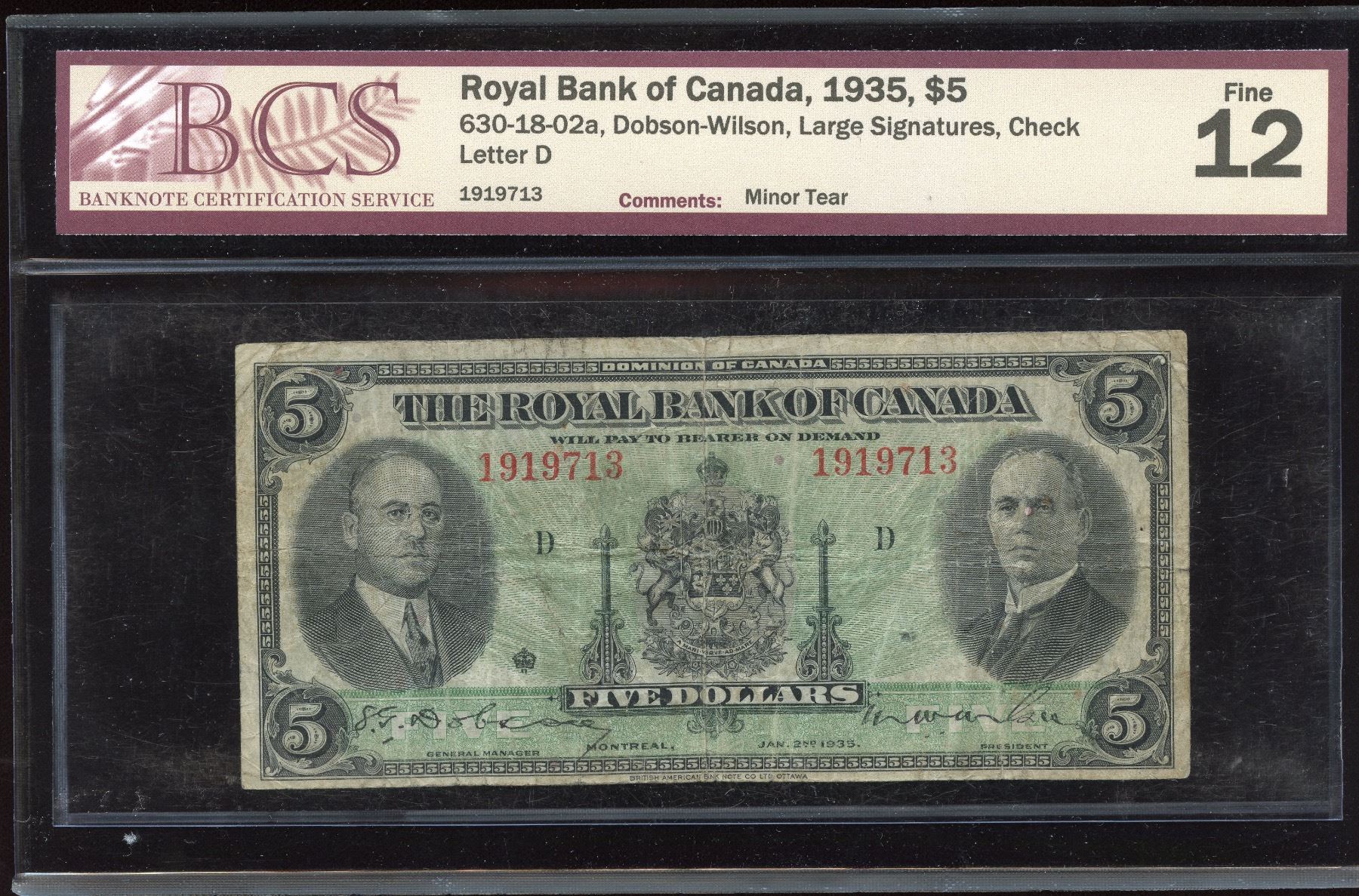 CH 630-18-02a. BCS Fine 12. Large Signatures. S/N: 1919713/D.