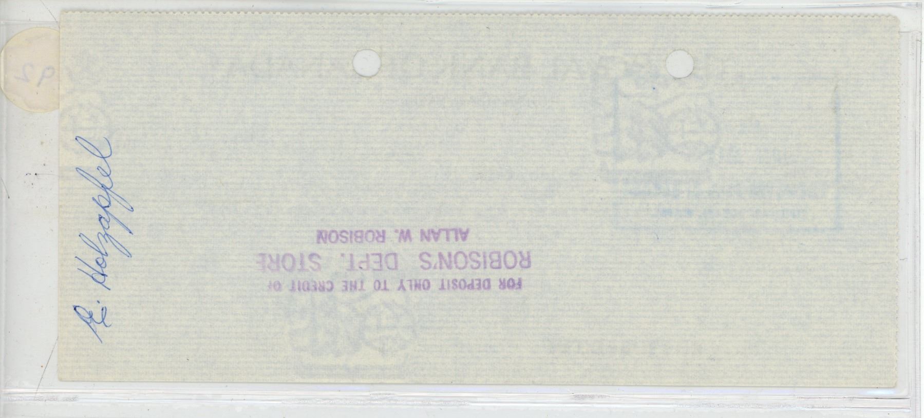 Royal Bank of Canada cancelled cheque from Indian Head, Sask. dated 1971 for $6.00 from the Indian Head Lodge #5 Masonic Lodge.
