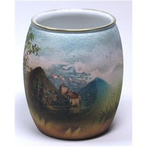 <tr><td>Title:Royal Bayreuth SCENIC Tapestry Barrel Vase</td></tr>