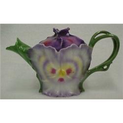 Royal Bayreuth teapot with lid "Pansy", blue mark and impressed Deponiert, measures 5" high Es...