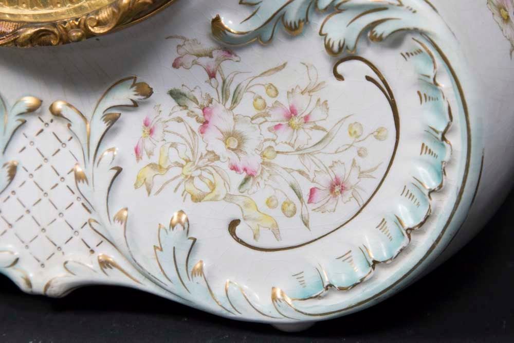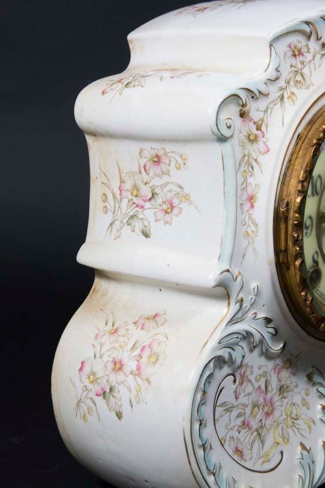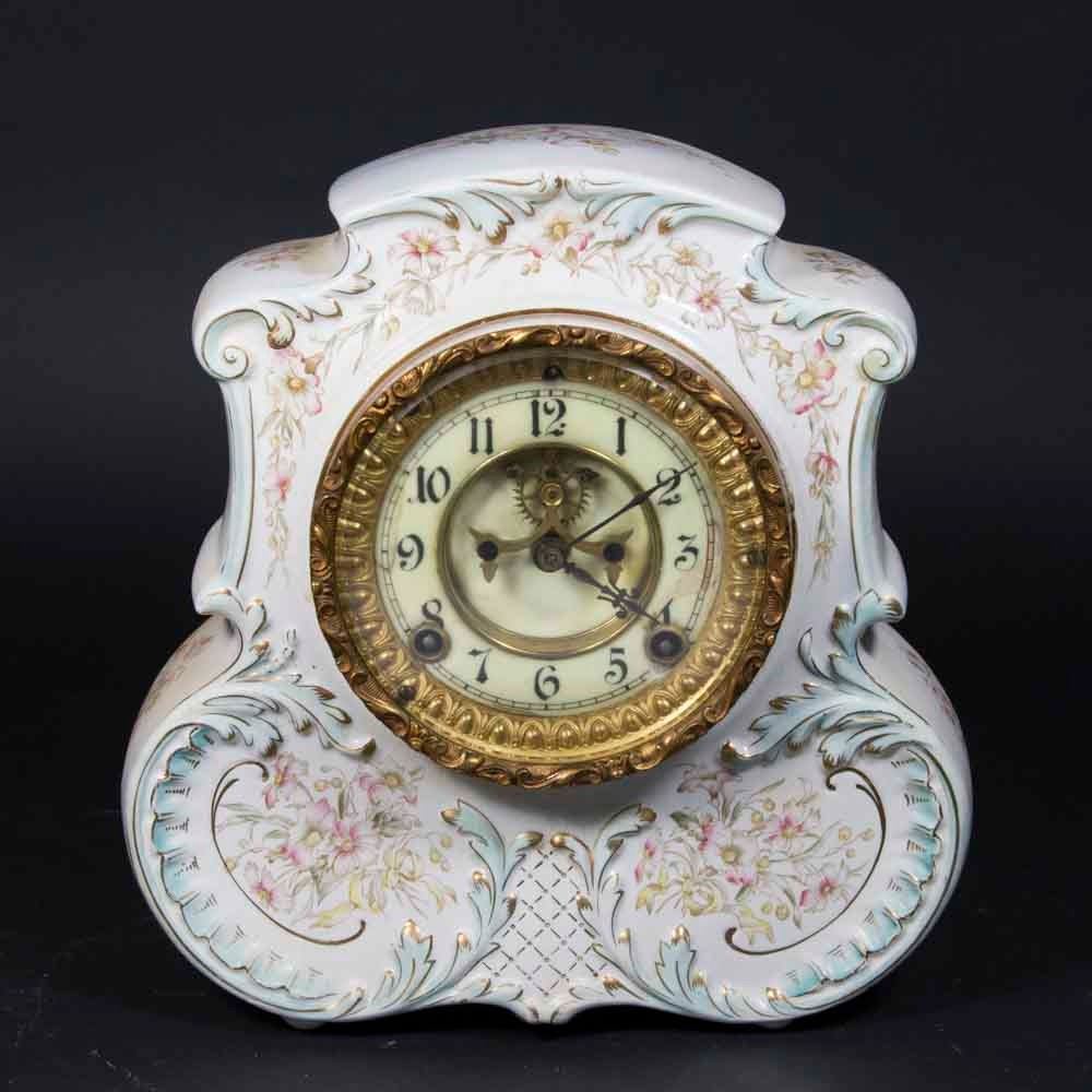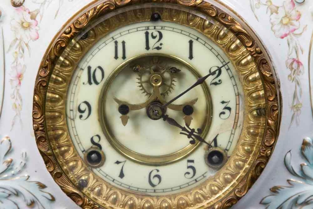 Open escapement. Approx. 10 1/2" H x 10" W. (6055) Some lines in porcelain and dial.