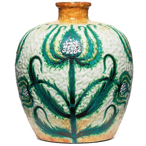 Fine Royal Bonn vase, bulbous form with a beautifully painted floral design in green,yellow and ivory, marked,#2617, 7.5in.h, exceptional example