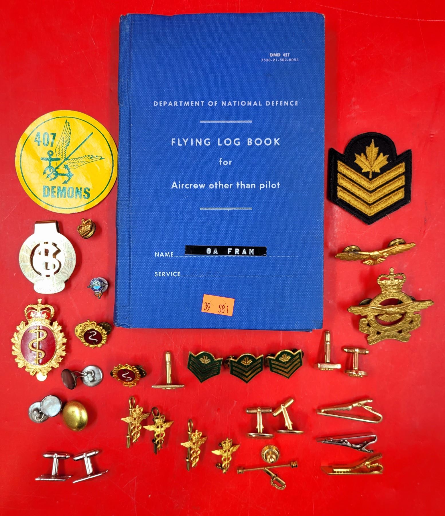 Royal Canadian Air Force Demons Collectibles Lot w/ Cuff Links, Tie Clips, Log Book, & More