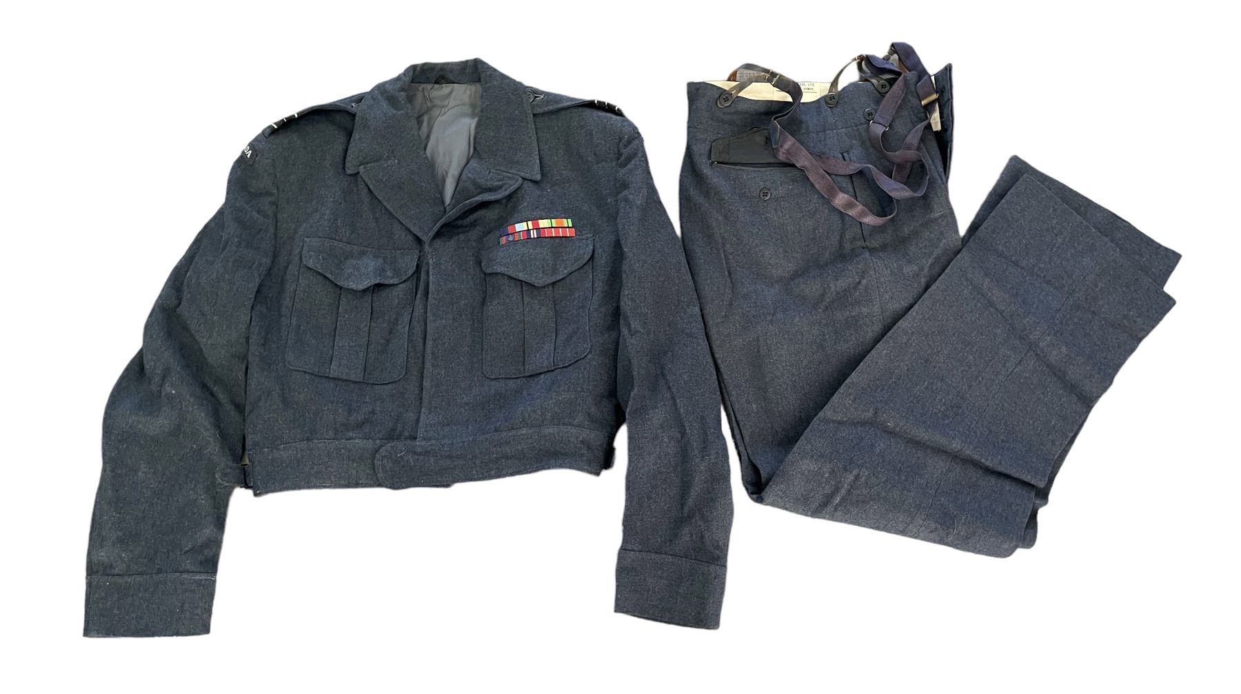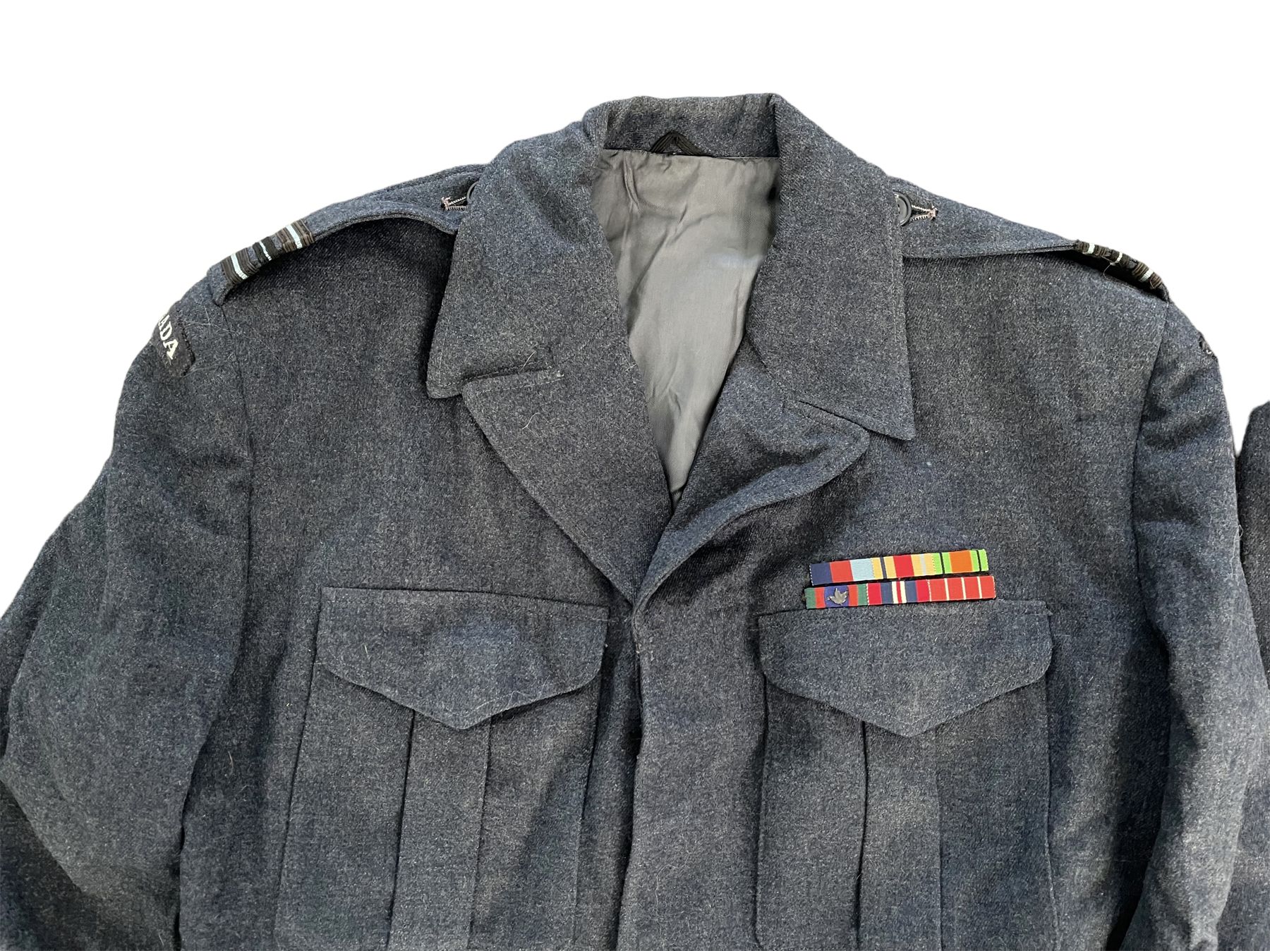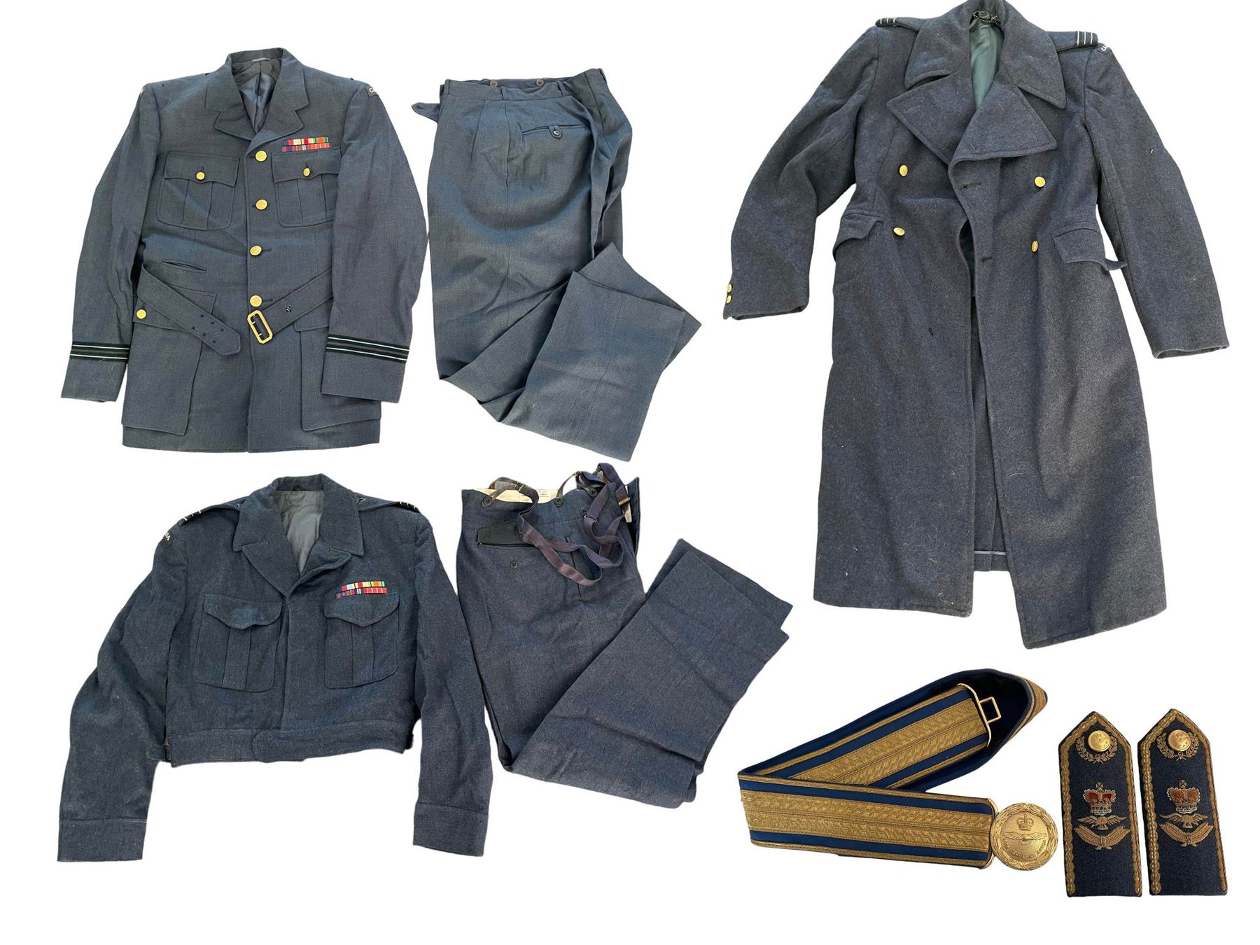 A great grouping pertaining to S/L TNH Crump. All post war. 1950's dated. Includes Battle Dress Tunic with pants, Service Dress Tunic with pants, Great Coat, and officers belt and rank epaulets. Ribbons on each tunic. 5 uniform pieces, belt and shoulder boards. All in very fine condition.