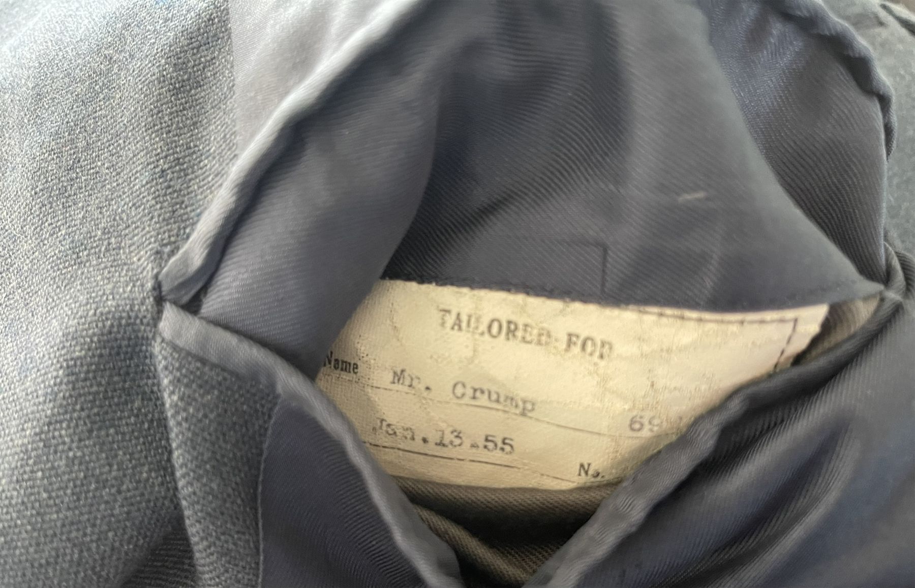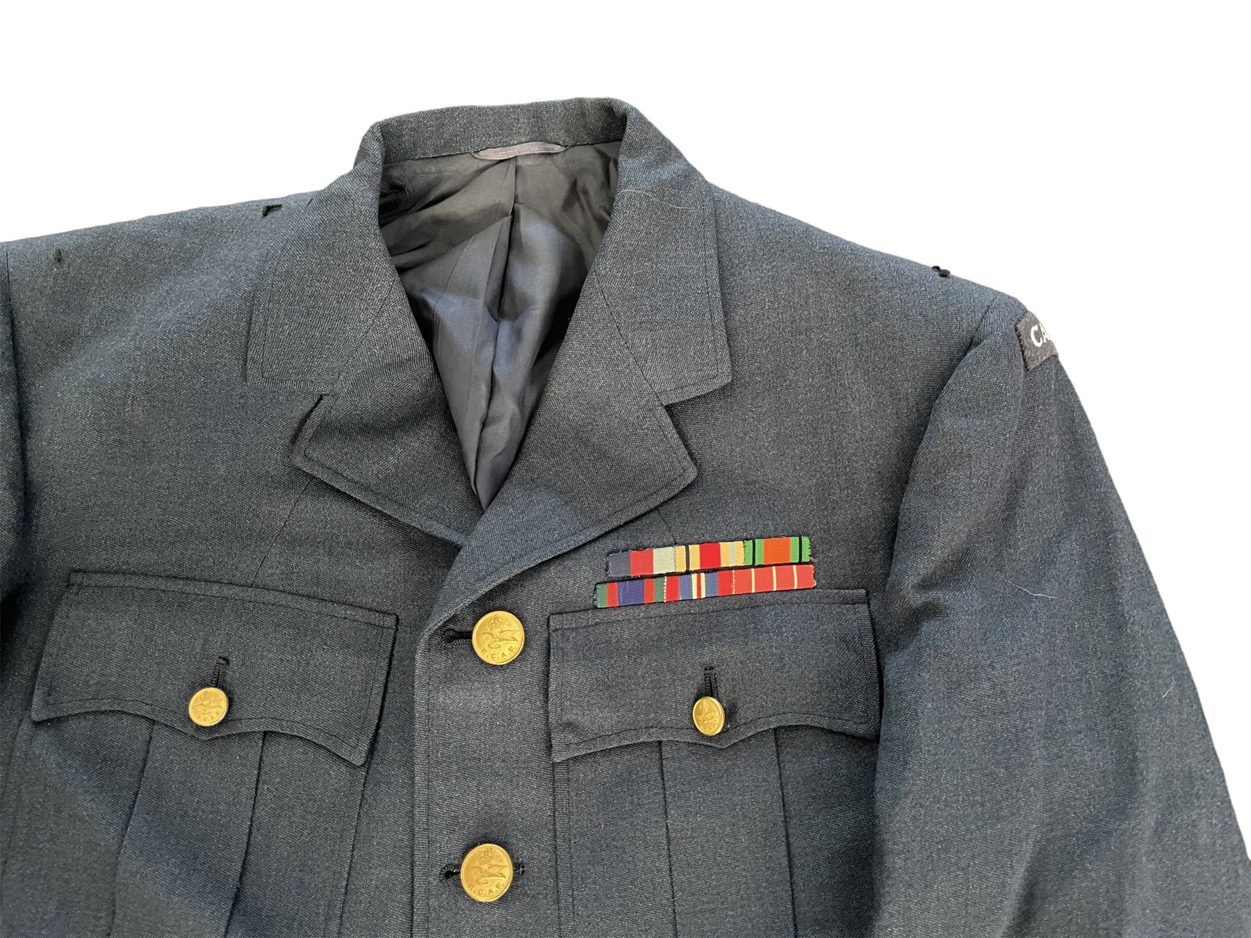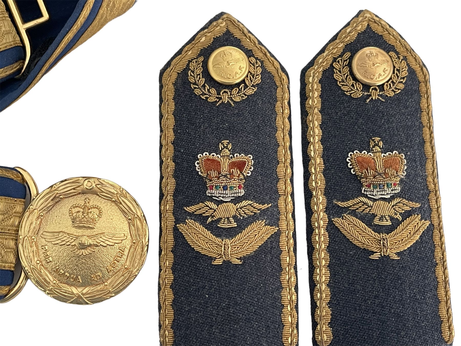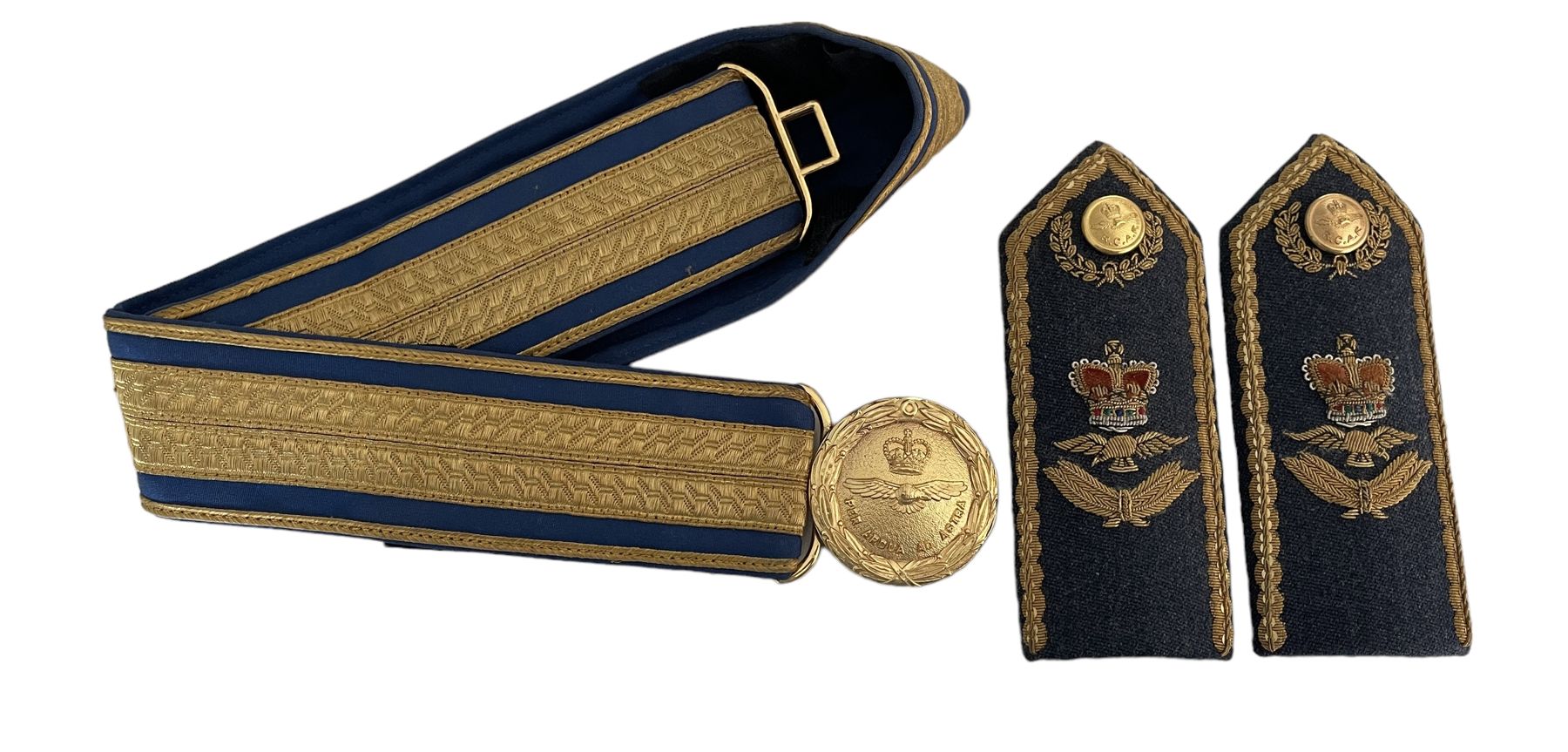 A great grouping pertaining to S/L TNH Crump. All post war. 1950's dated. Includes Battle Dress Tunic with pants, Service Dress Tunic with pants, Great Coat, and officers belt and rank epaulets. Ribbons on each tunic. 5 uniform pieces, belt and shoulder boards. All in very fine condition.