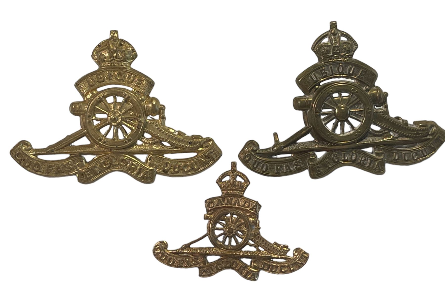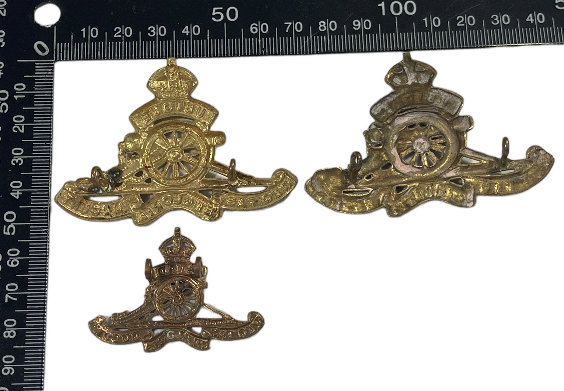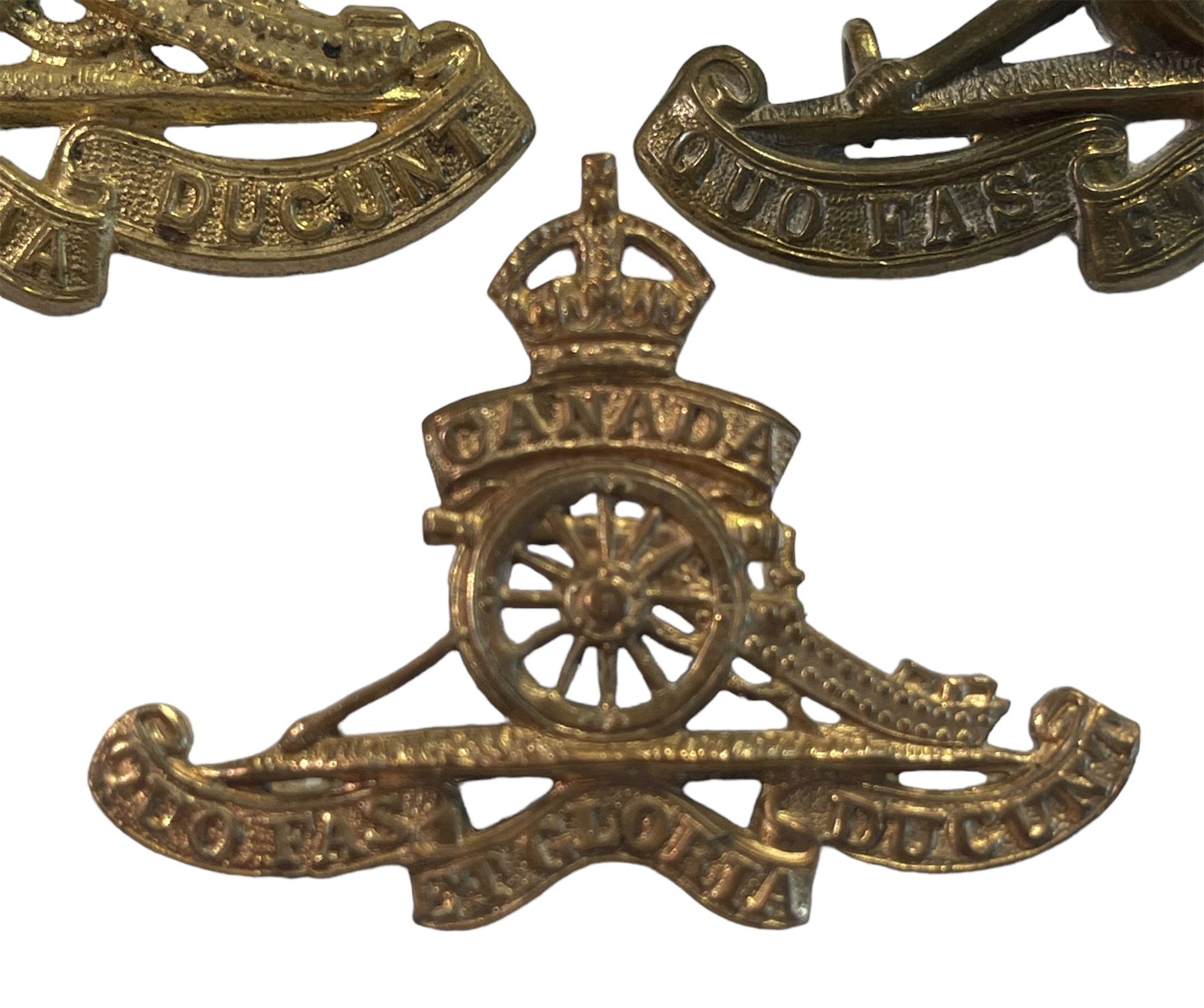 Lot of 3. All in brass. Two large and one small size. All with lug fasteners. Small badge is the earlier pattern with the CANADA Banner,