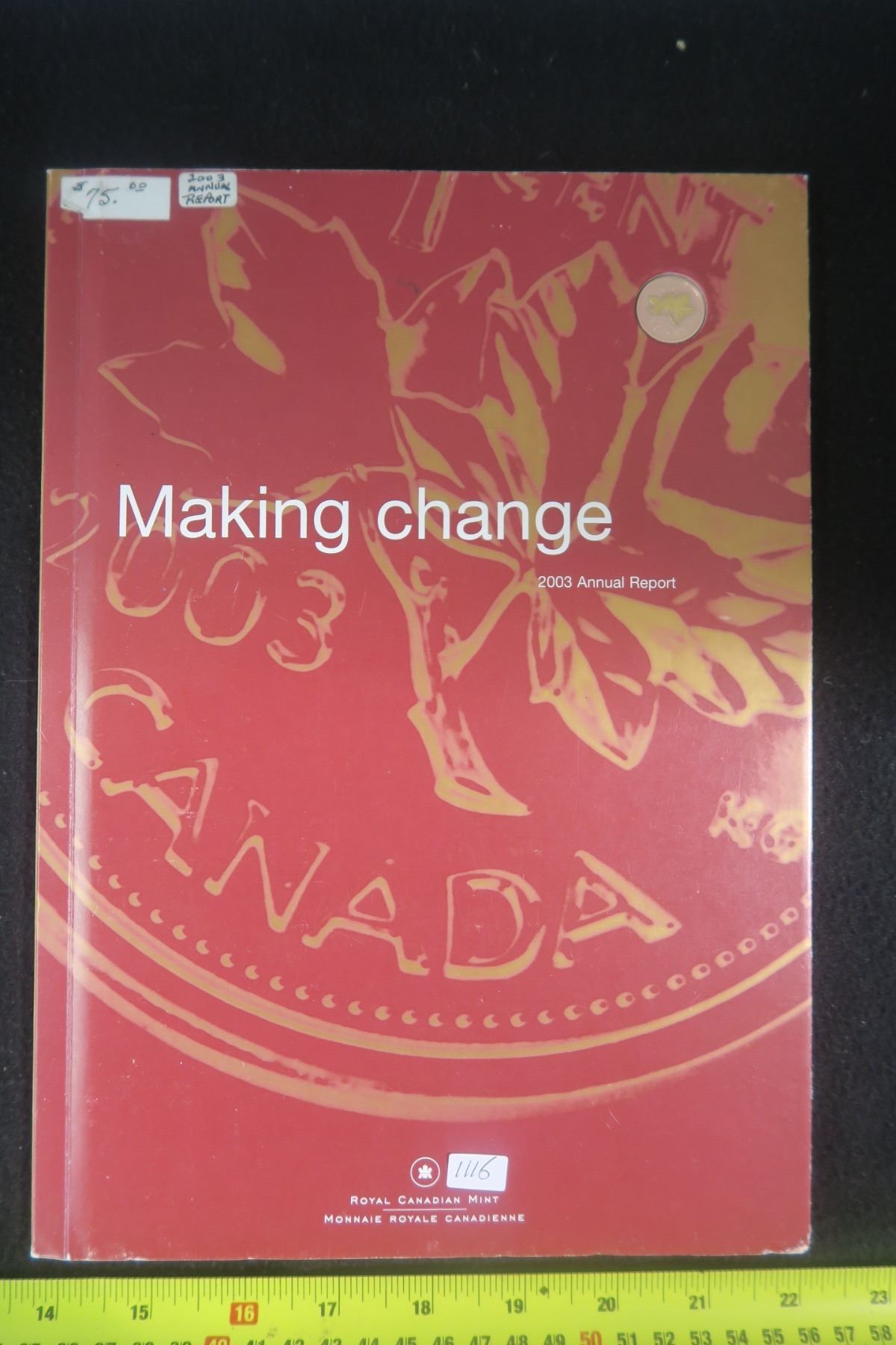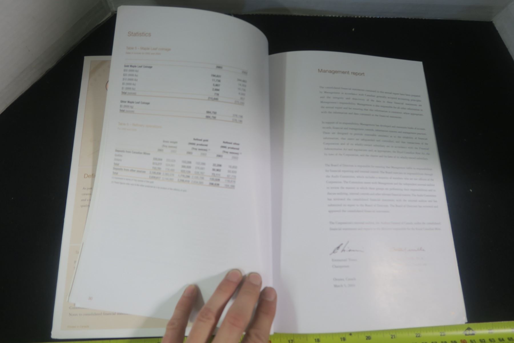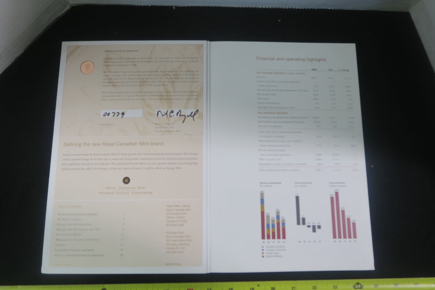 Royal Canadian Mint 2003 Annual Report with Gold-Plated Cent. The only way to obtain this special cent is to purchase the Annual Report. Serial Number 00779 and signed by David Dingwall, President and CEO of the RCM.