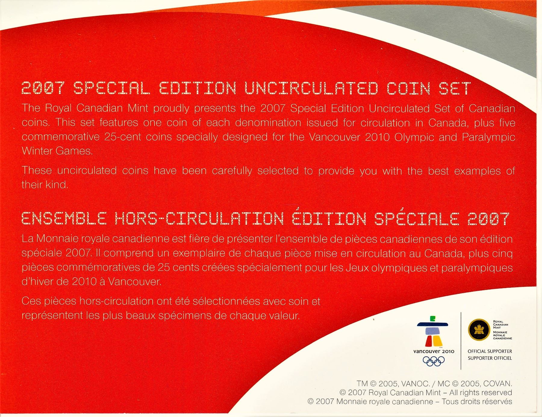Royal Canadian Mint 2007 Vancouver 2010 Olympic Winter Games Special Edition Uncirculated Coin Set