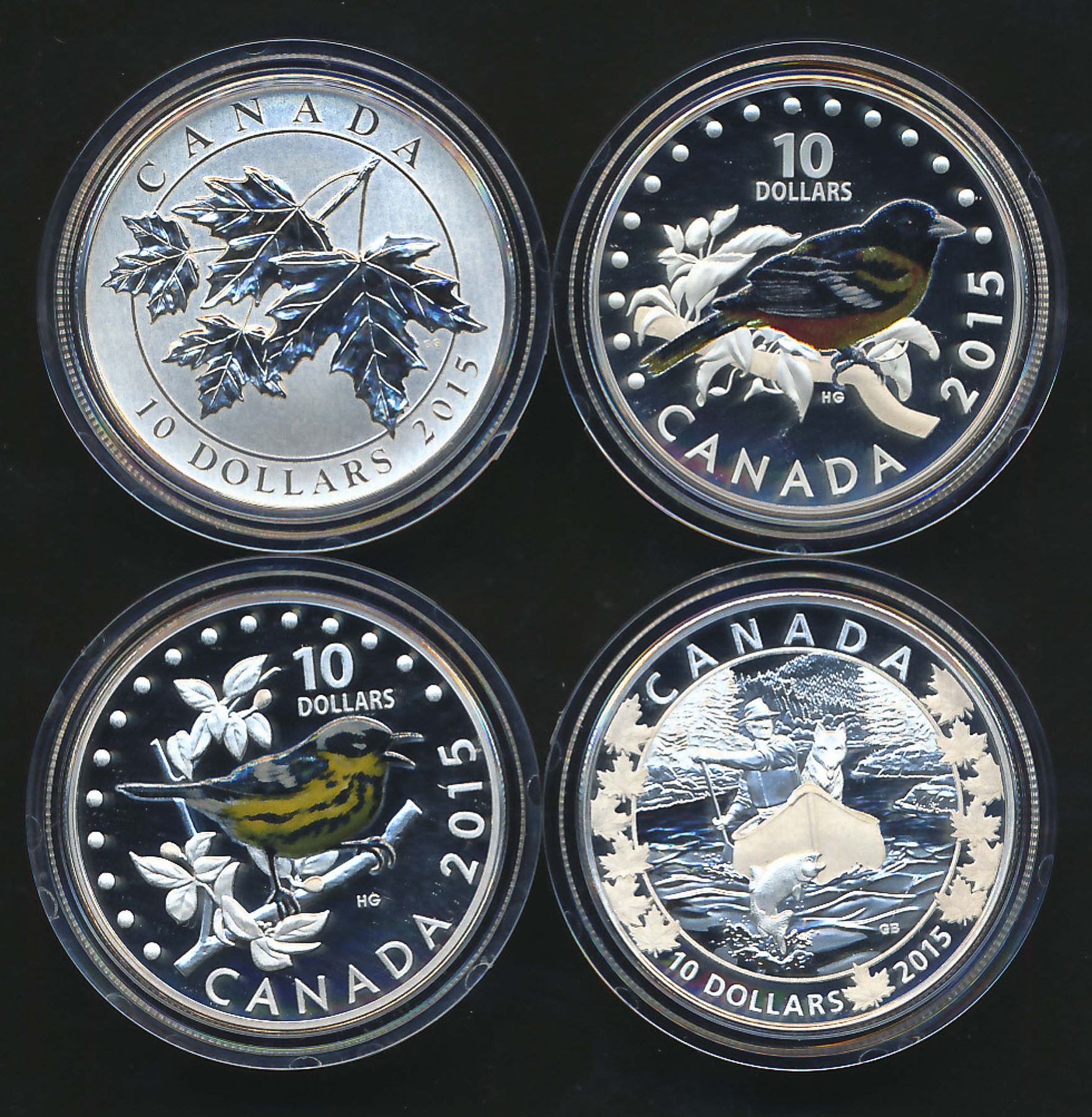 Royal Canadian Mint 2015 A Lot of 4 x $10.00 Fine Silver .9999 AG