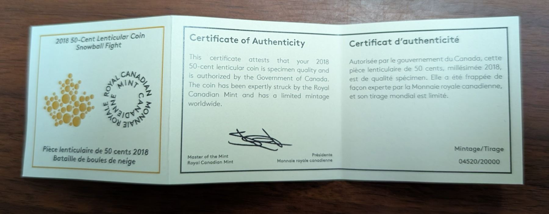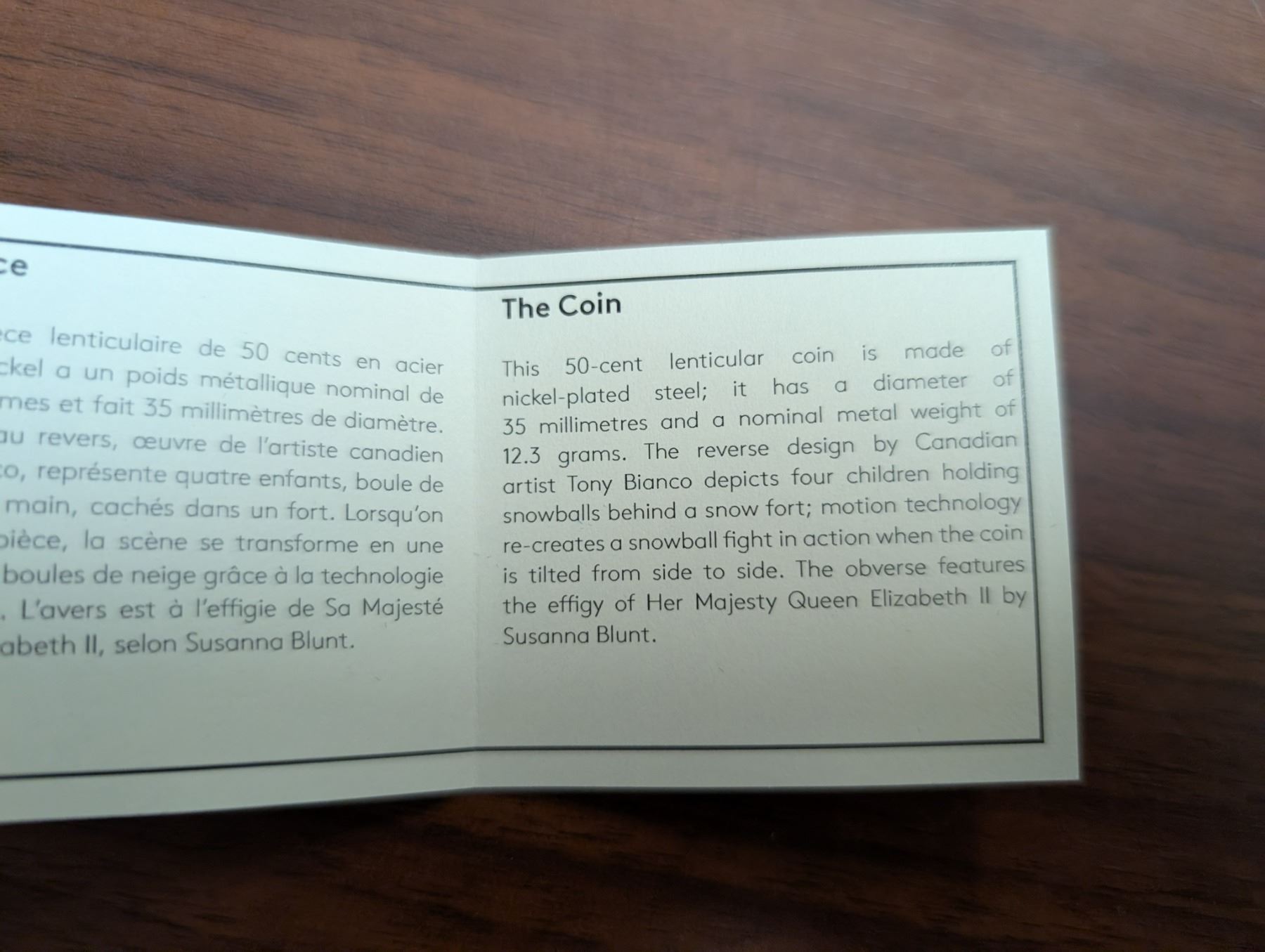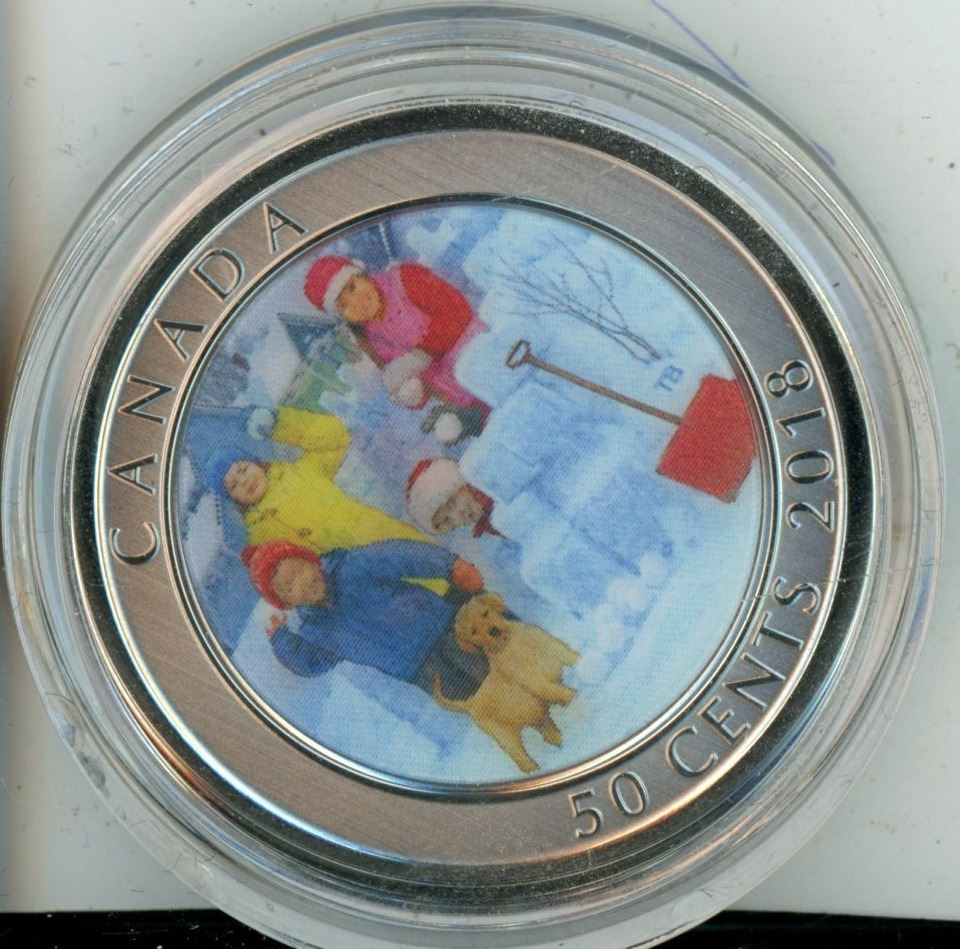 Royal Canadian Mint Coin, Housed in original Case 2018 50-Cent Lenticular Coin, Snow Ball Fight