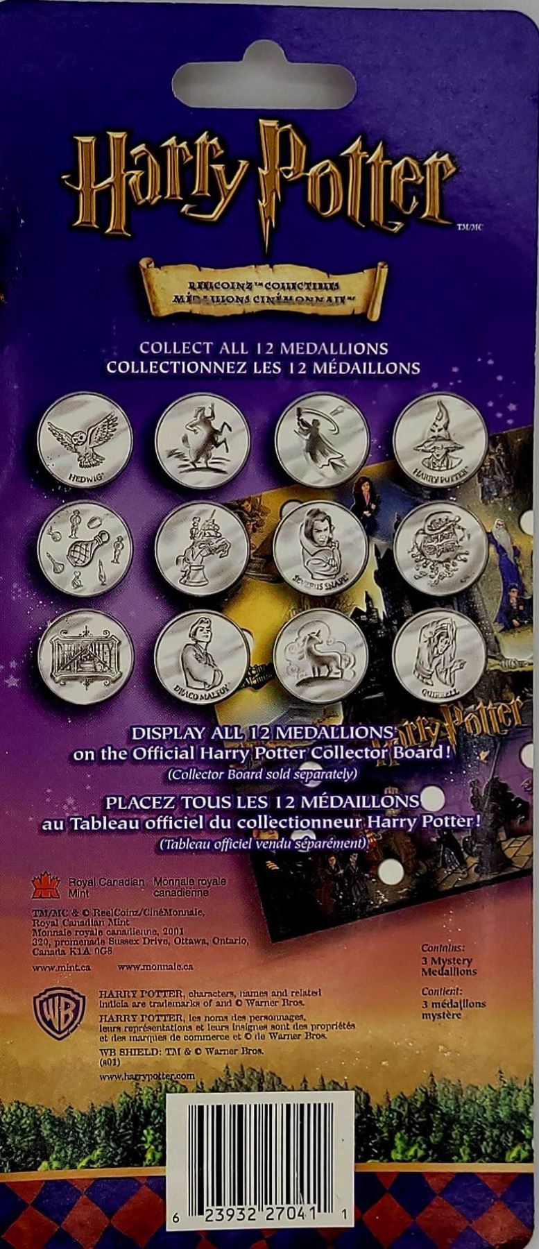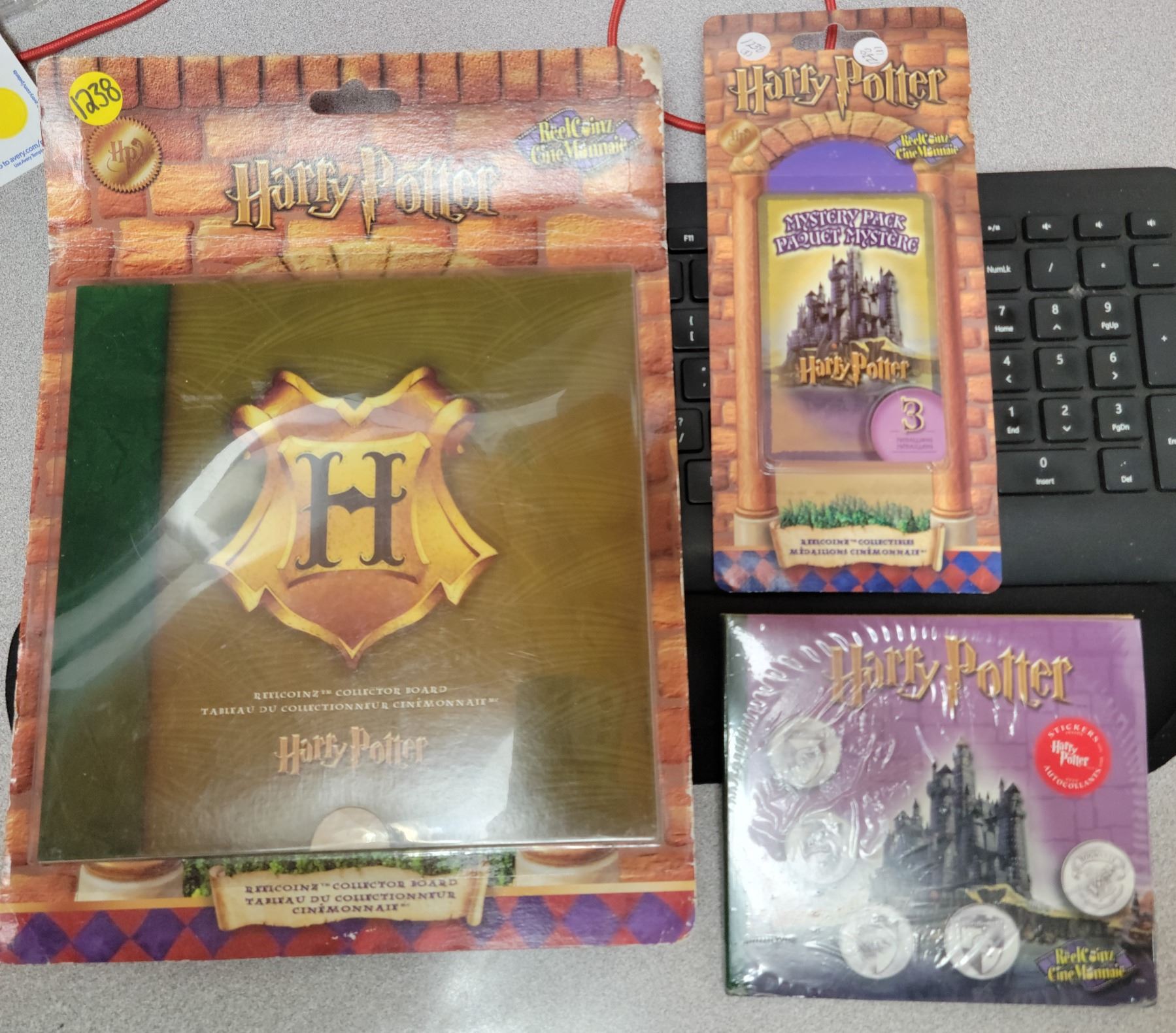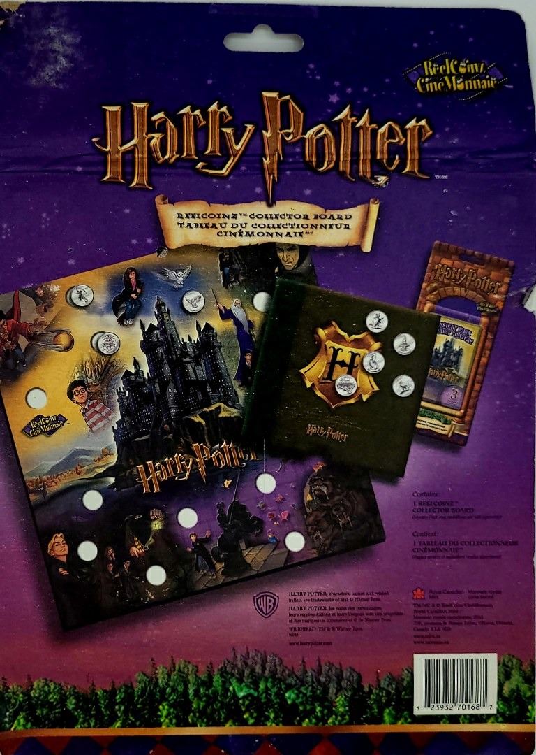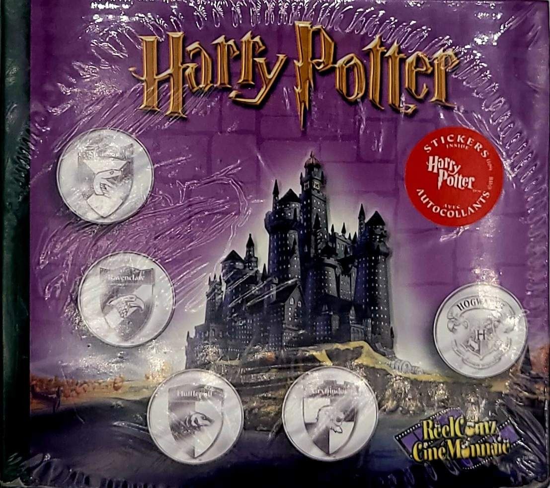Royal Canadian Mint “Harry Potter REELCOINZ COLLECTOR BOARD, 5 COLLECTIBLE MEDALLIONS & Stickers & a MYSTERY PACK UNOPENED N