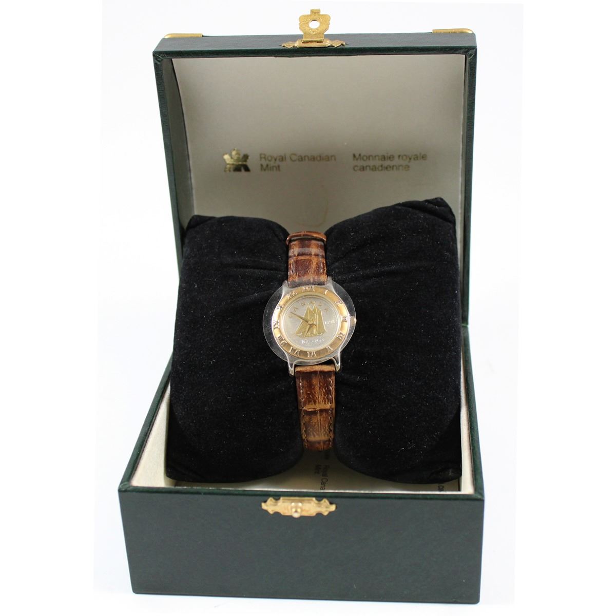 Royal Canadian Mint Watch with 1998 Bluenose 10-cent Face and Leather Band. All Original packaging included.