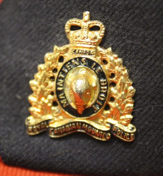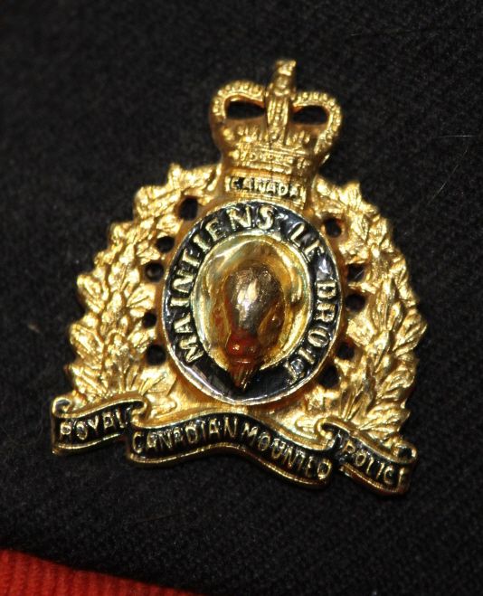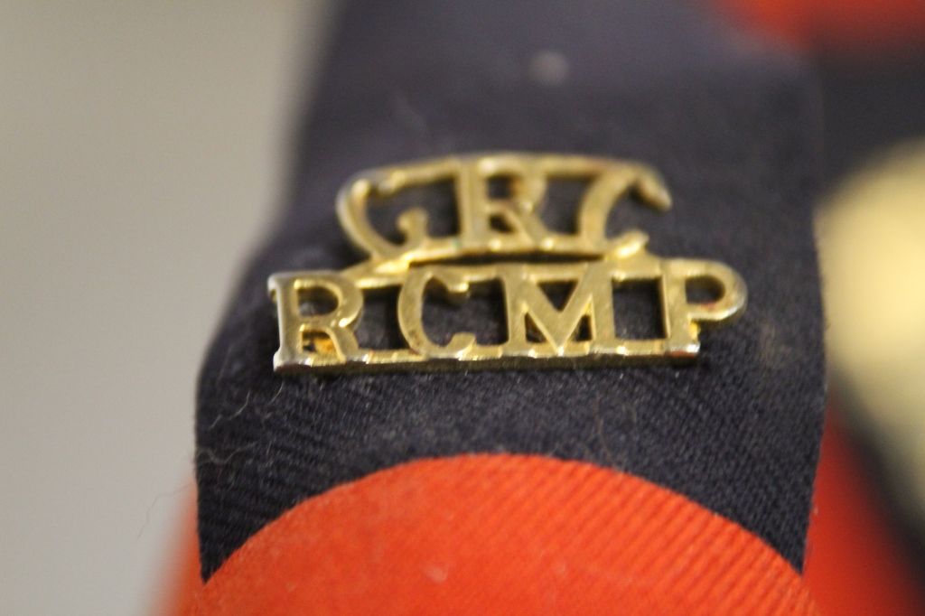 Royal Canadian Mounted Police Uniform - "R.C.M.P. C.R.C" Dress coat with Badges, Patches, and Buttons.