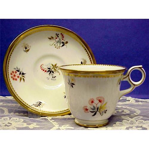 Gorgeous fine bone china tea cup and saucer, made by Royal Chelsea China, England - Love the tall narrow with intricate gold decorations at the rim and "double" handle and the best of all gorgeous hand painted floral decorations, Very fine condition, free of chips or cracks - US Buyer to pay 7.30 for insured shipping - Thank You very much for looking!