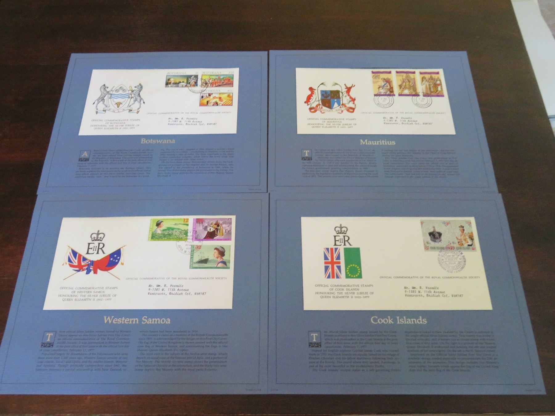 Set of 4. Comes in a cardboard envelope.