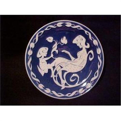 Mors Dag, Mother's Day. Very nice 6 inch, blue and white plate featuring a sitting mother with child. White spots are light reflections, this plate is in excellent condition. Marked: Royal Copenhagen, Denmark, Mother's Day, V.