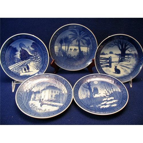 Collection of 5 Royal Copenhagen Collector Plates including, 1971 Hare in Winter, 1972 In The Desert, 1973 Going Home for Christmas, 1974 Winter Twilight, and 1975 The Queen's Christmas Residence. All in excellent condition.