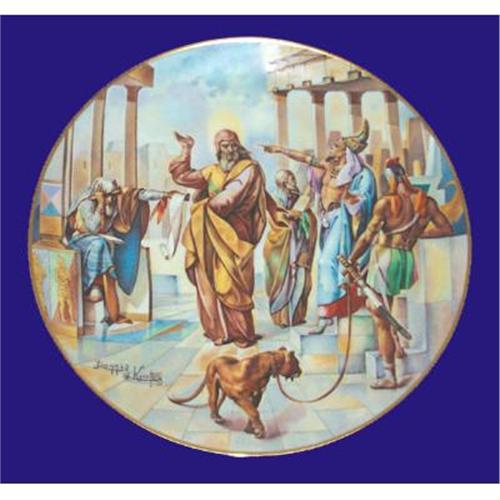 Let My People Go is the 3rd issue of 12 plates in the series The Promised Land by artist Yiannis Koutsis for Royal Cornwall Limited Edition Collector Plates in 1979. Depicting Moses standing before Pharaoh issuing his demand, measures 8.5 inches in diameter and is in mint condition with original box and certificate.